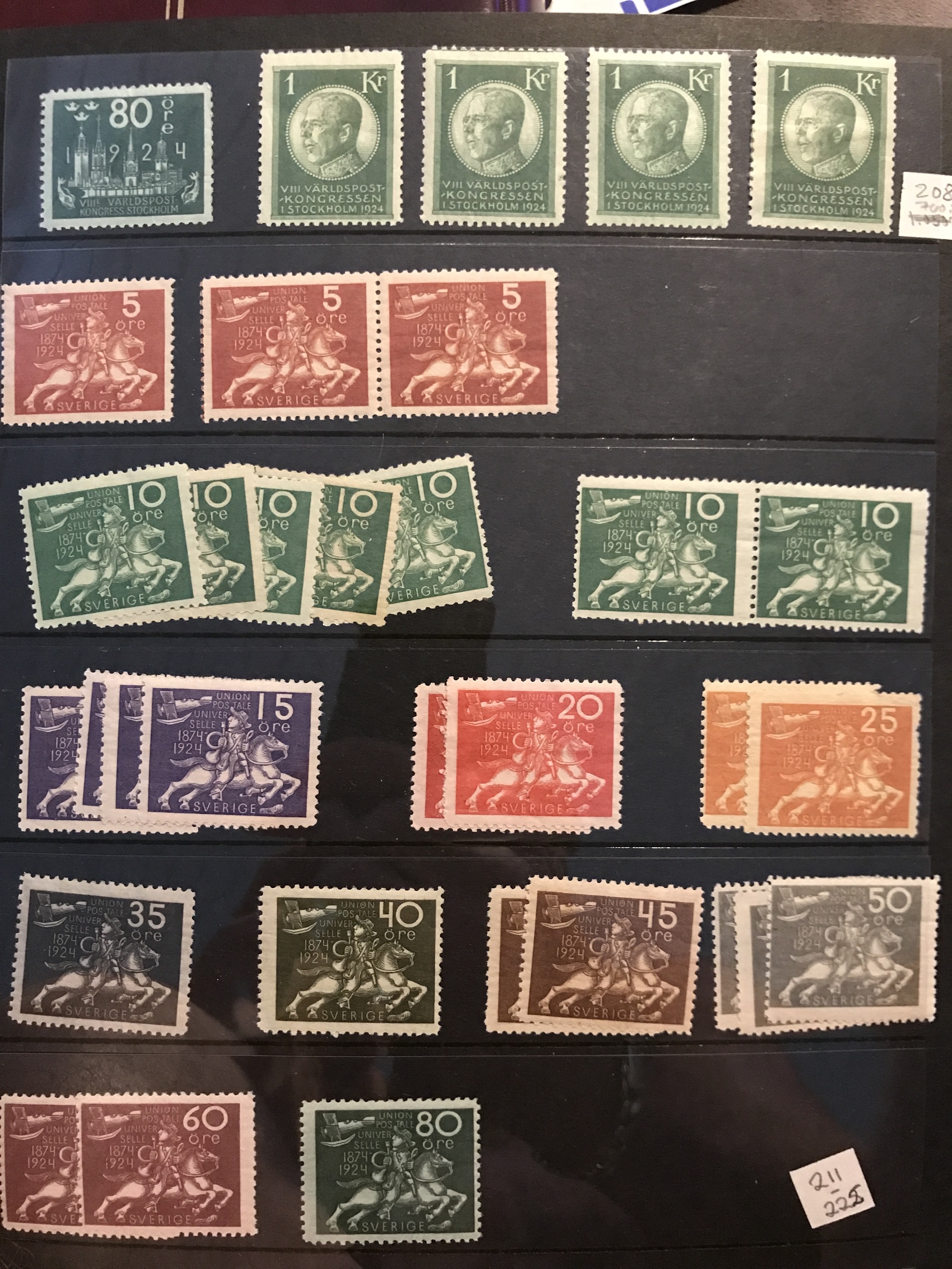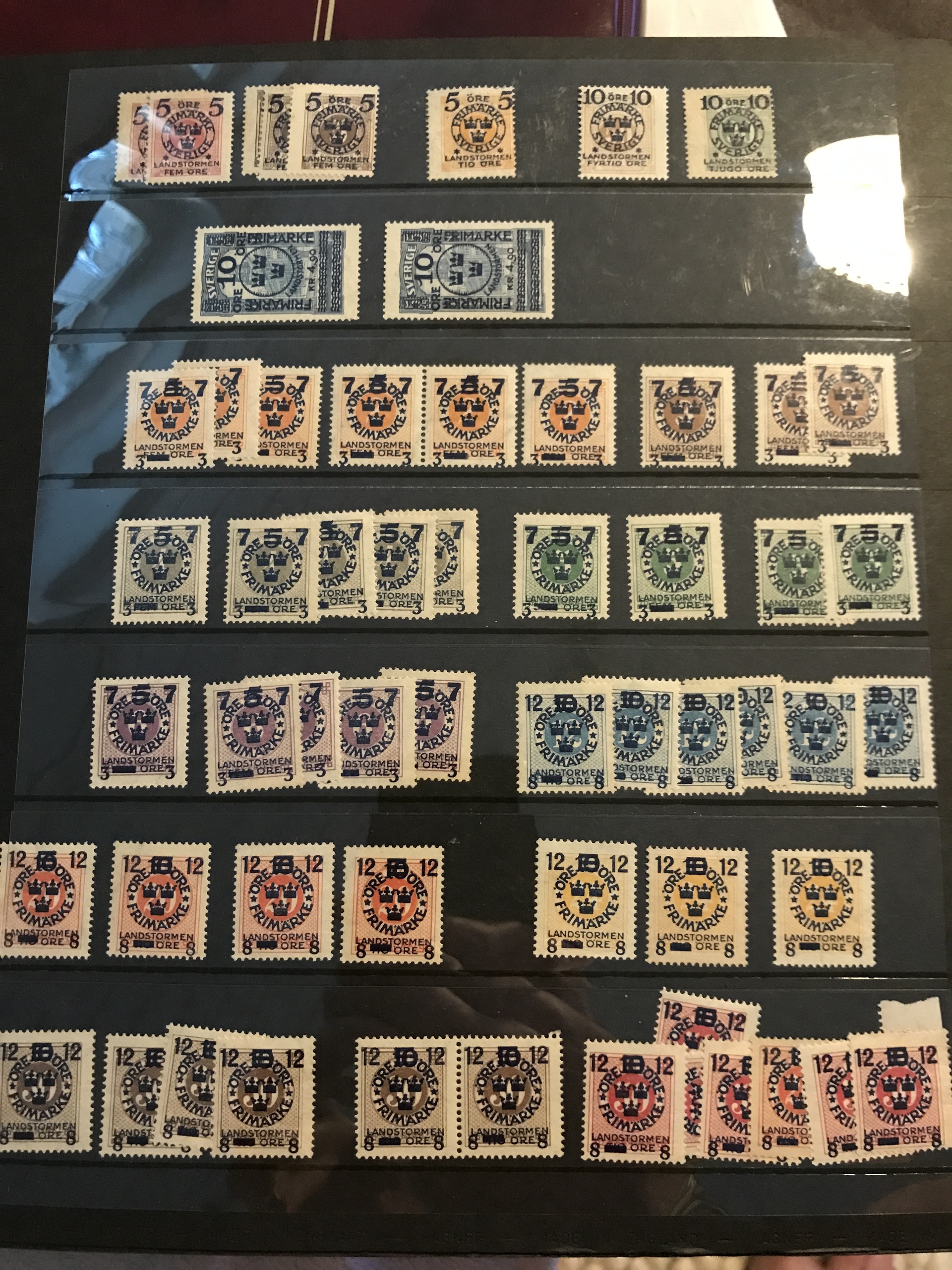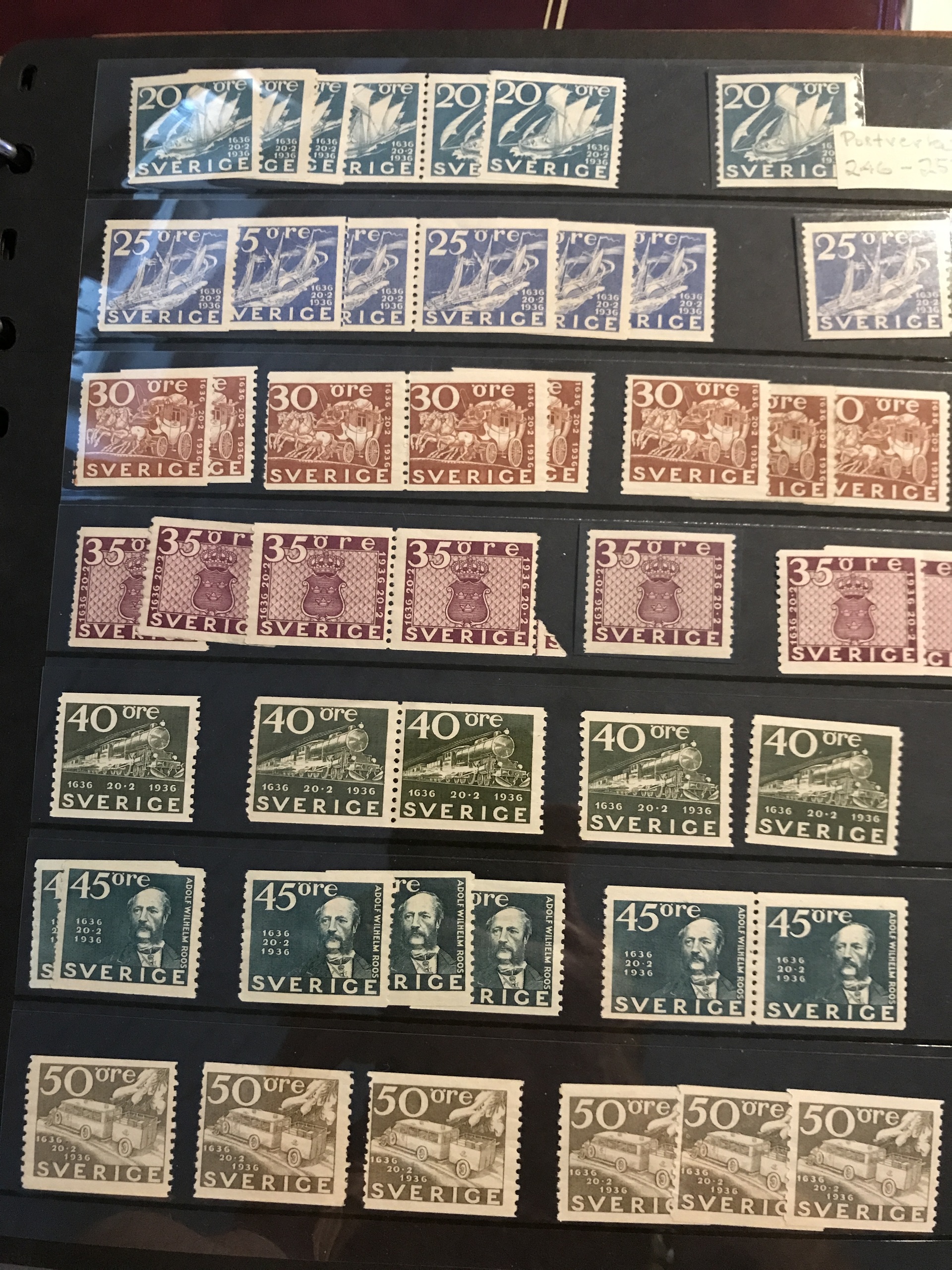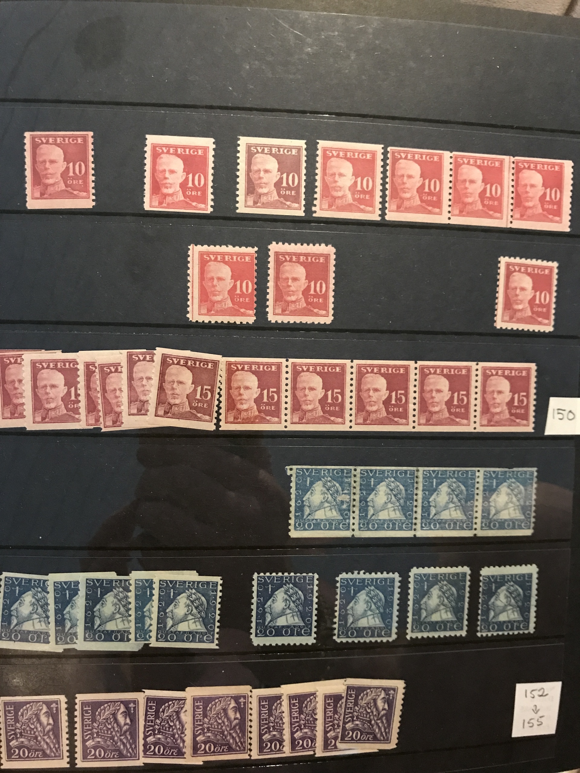 Sweden. ★★/★. Three Visir binders with 1000s of stamps Circle types Posthorn–1970s. Containing several GV Medallion, Landstorm and Officials incl. two * F125, good Coil stamps incl. five ** 149A, Congrss and UPU incl. four * F208, five ** sets Post Office 1936, some BC/CB-pairs, postage due stamps, blocks-of-four and stripes etc. Mostly fine quality. Please see a selection of scans at www.philea.se.