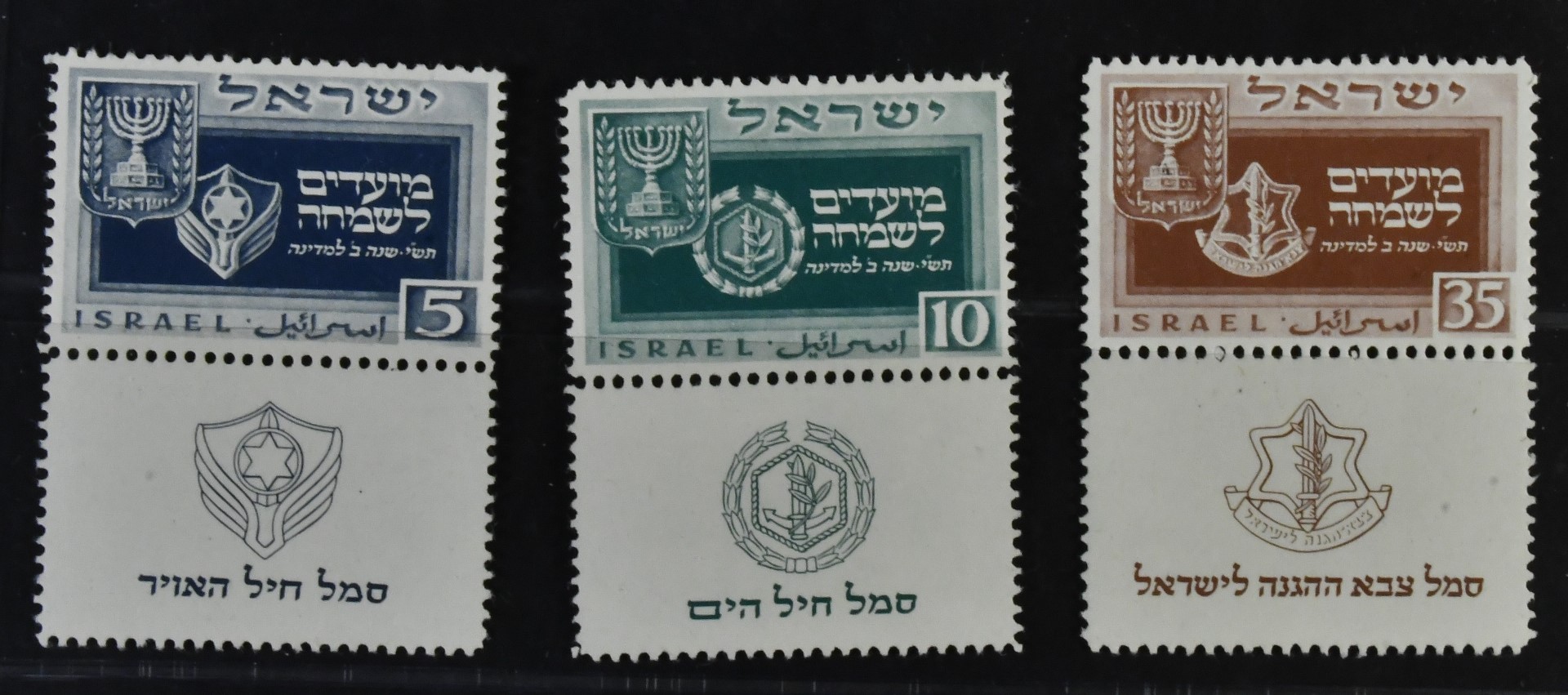 Israel. Michel 19–21 ★★, 1949 Festival with incomplete tabs SET (3). EUR 475