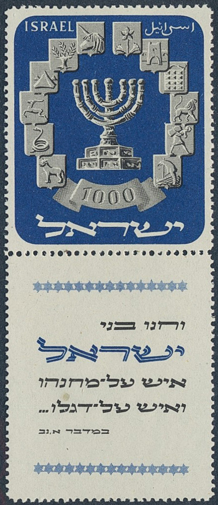 Israel. Michel 66 ★★, 1952 Coat-of-arms 1000 Pr with incomplete tab. EUR 200