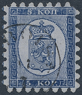 Finland. Facit 3 used, 1860 Coat-of-Arms Russian values 5 k blue. SEK 1800