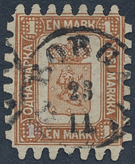 Finland. Facit 10 used, 1867 Coat-of-Arms Finnish values 1 Mk brown. Cancelled BOR.... 23.11. SEK 7500