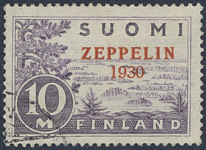 Finland. Facit 165 used, 1930 Zeppelin overprint 10 Mk red on light grey-violet (1). SEK 2200