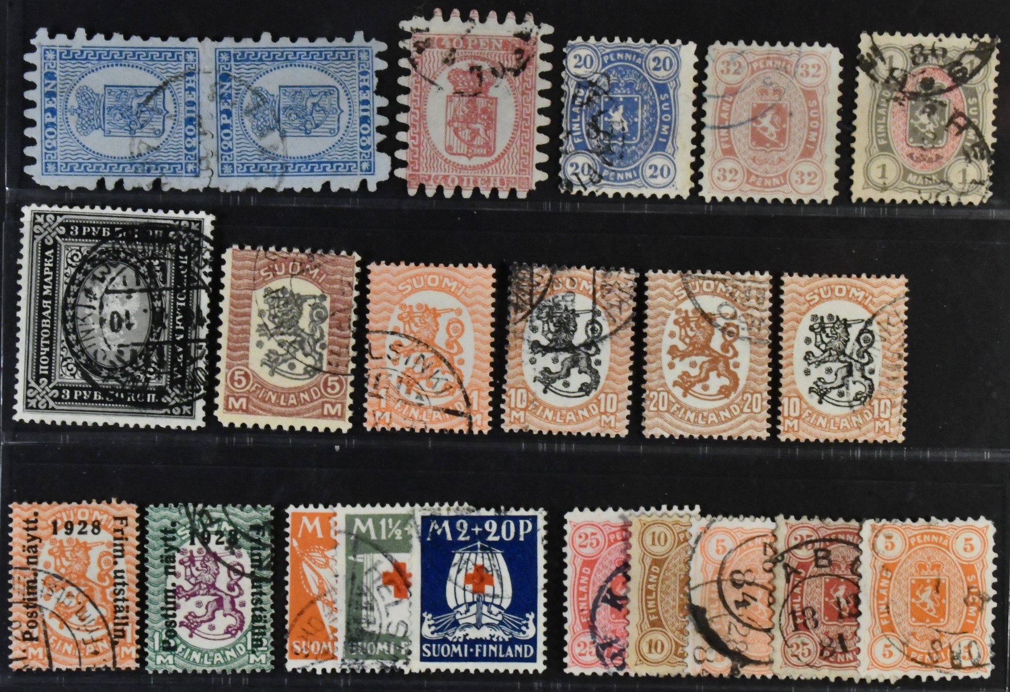 Finland. Used 1866–1930. All different, e.g. F 8 (pair), 9, 16c1, 18c1, 24, R14, 83, 116RW1, 121, 125, 133, 135-36, 162-64. Mostly good quality. F SEK 6010 (21)