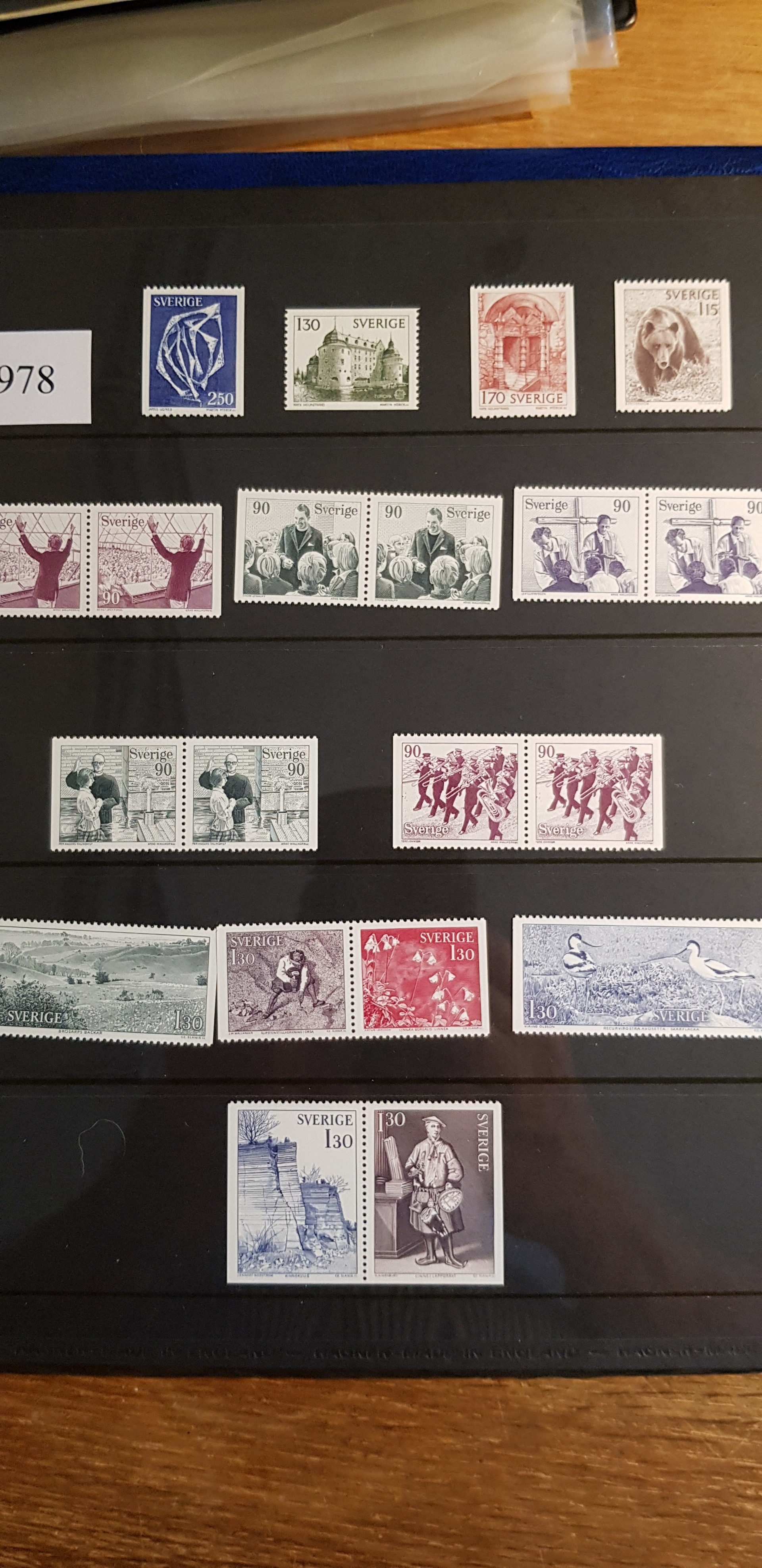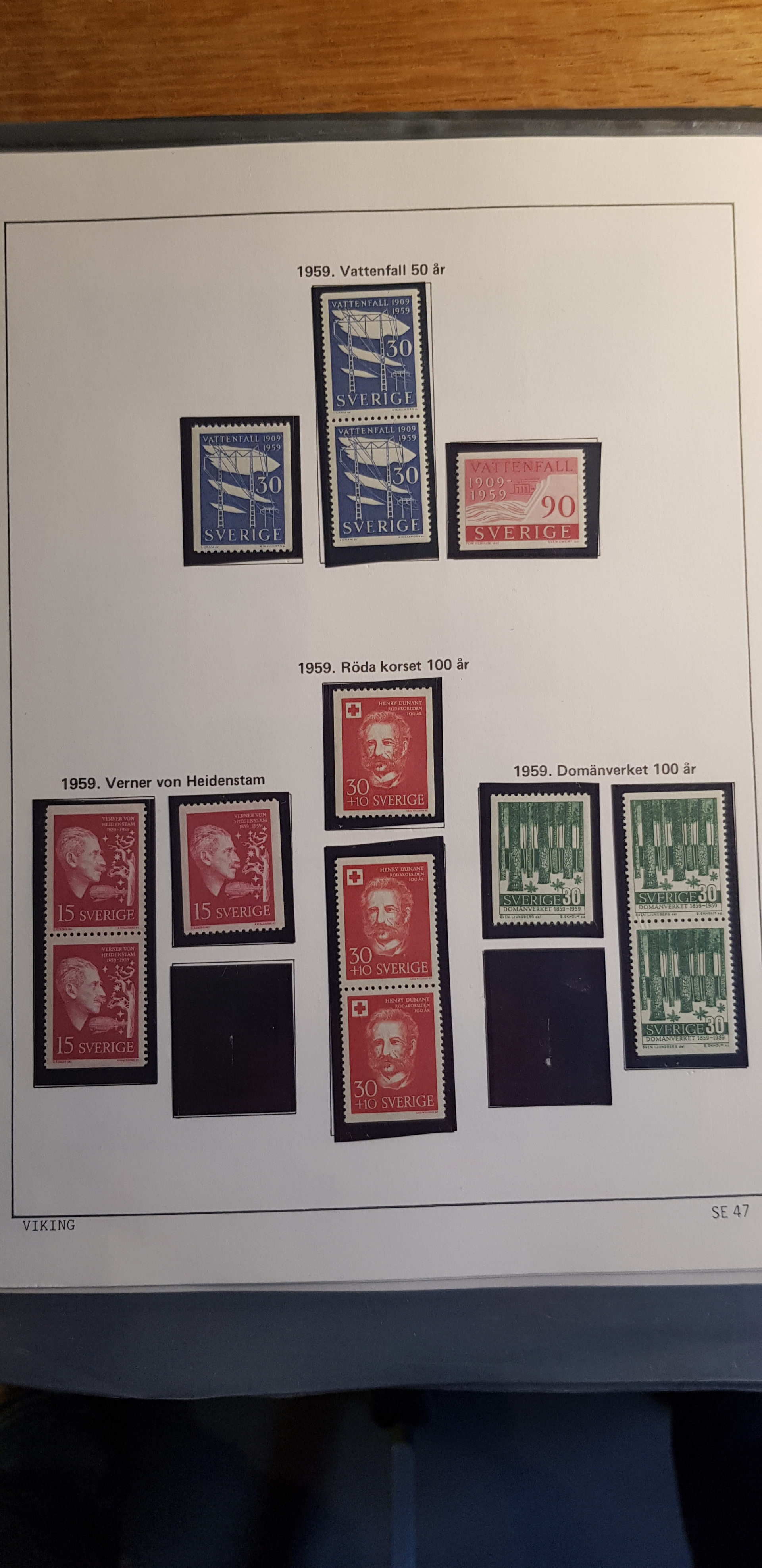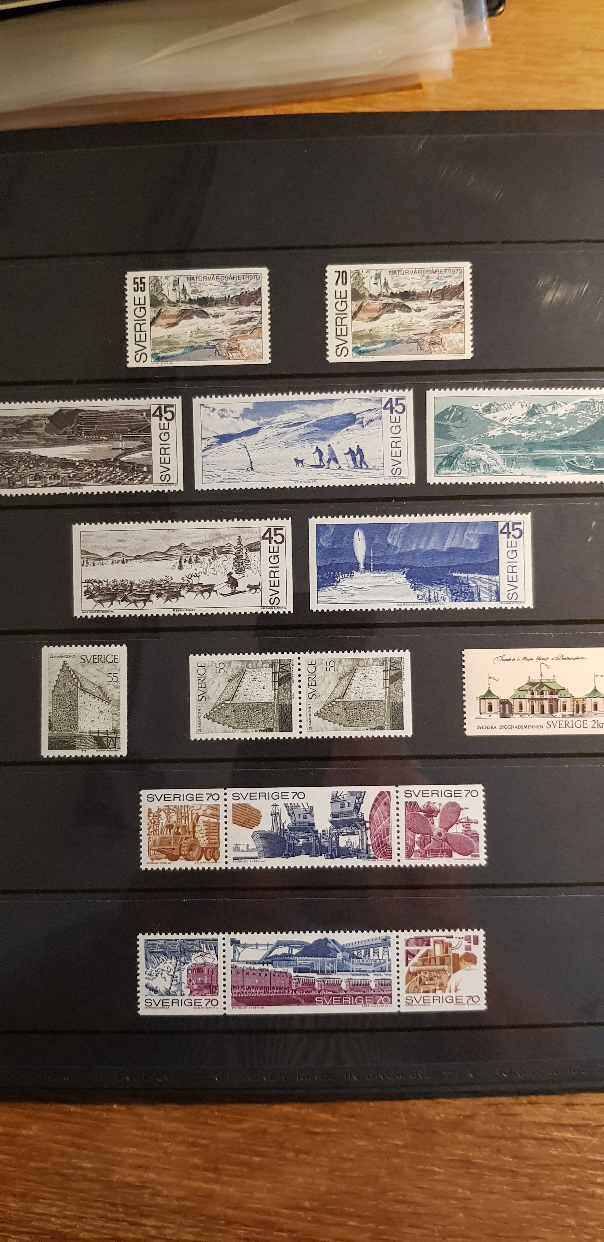 Sweden. Collection/accumulation ★★ 1900s in two albums. One SAFE album from 1968–1979 with Visir leaves in a very nice box and fairly complete. One Lembit album that does not contains that many stamps. Also a lot of loose leaves with stamps. Please see a selection of scans at www.philea.se. Mostly fine quality. (>1000)