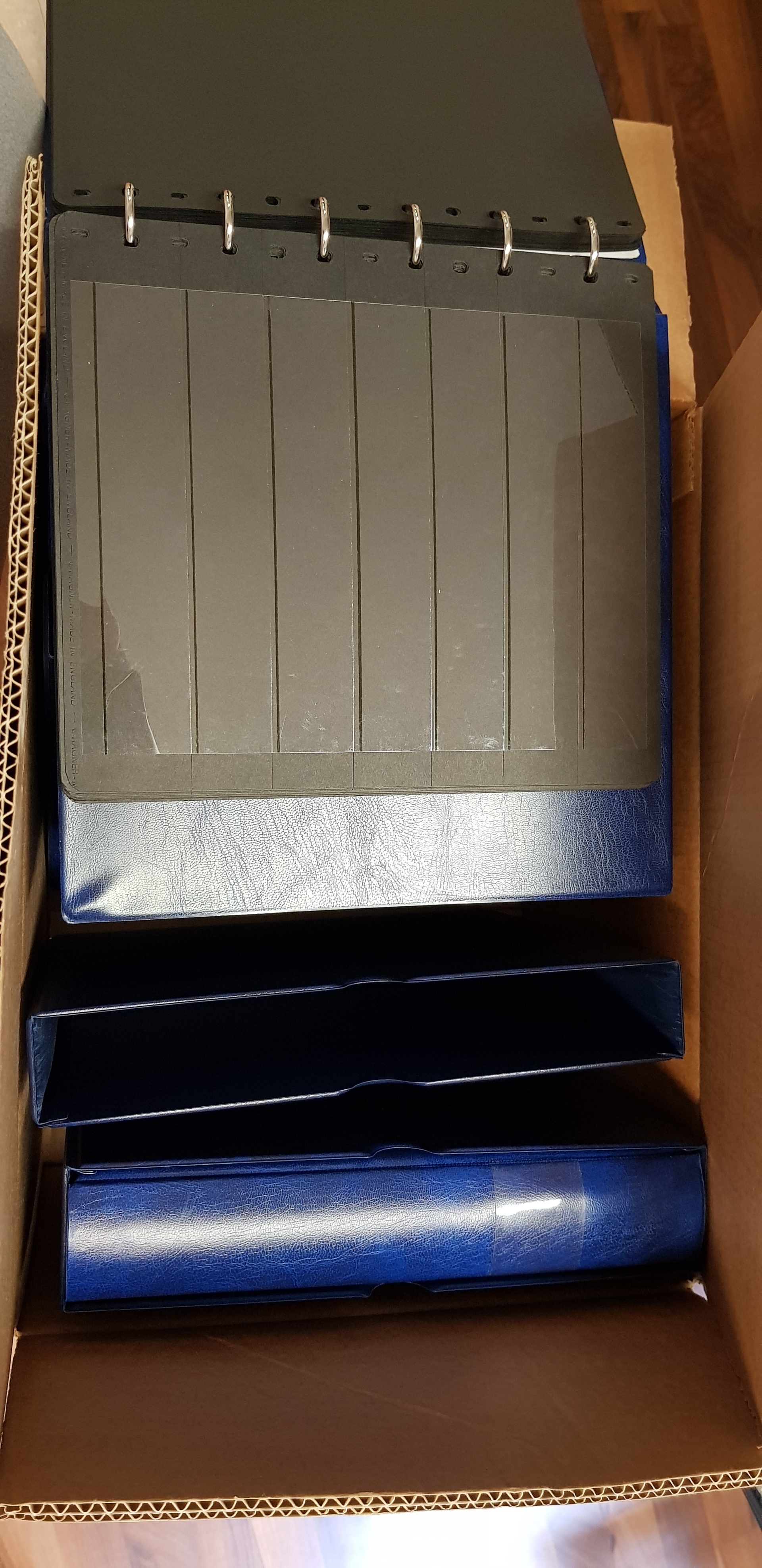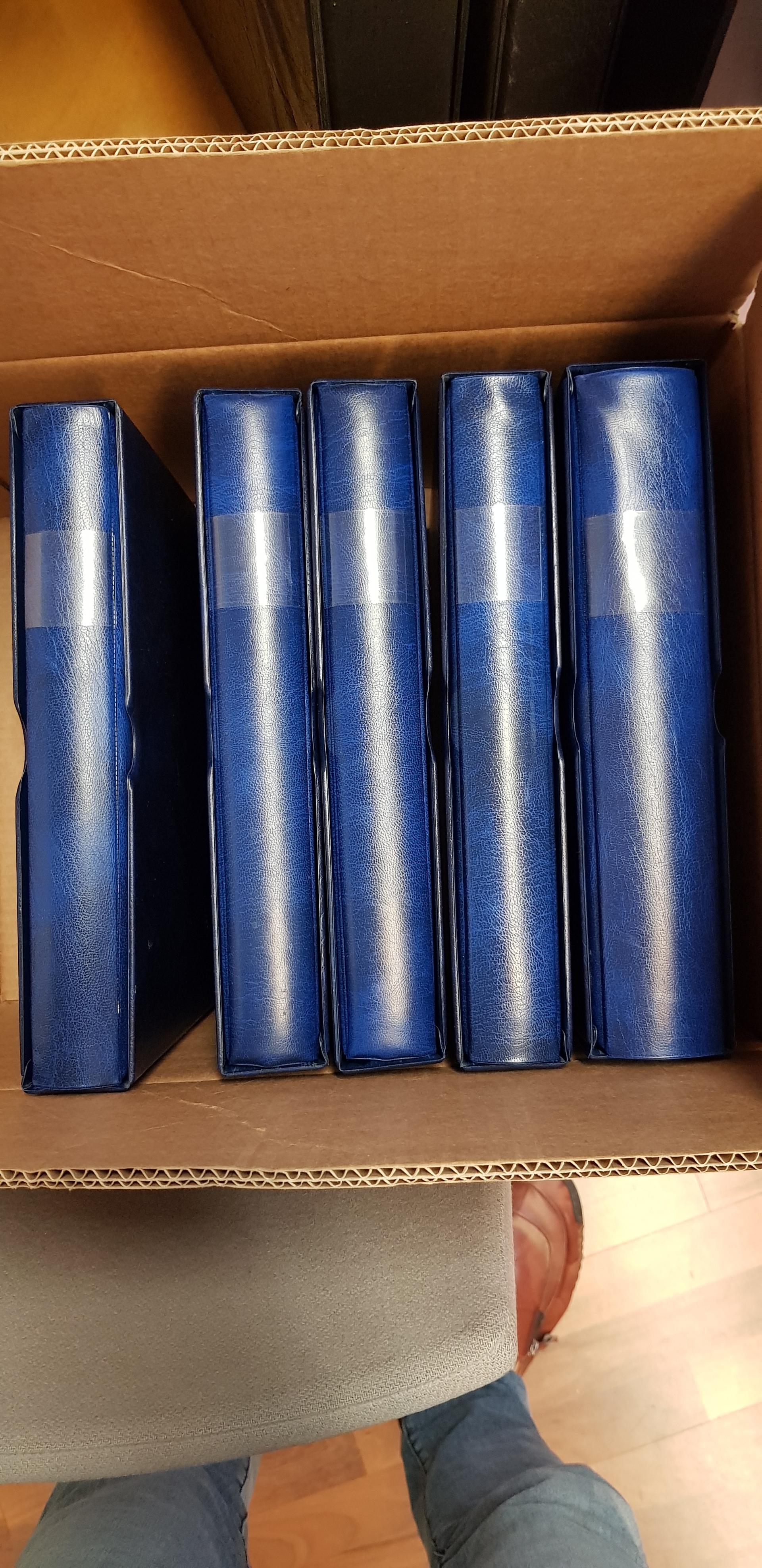 Accessories. Five SAFE albums without any stamps but full of VISIR leaves. They are in new condition and all five have slipcases. Four of them are thinner and one is thicker. Please see a selection of scans at www.philea.se. Approx. 10 kg. Approx. 10 kg.