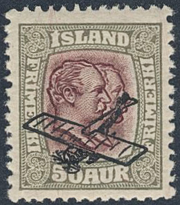 Iceland. Facit 161 ★★, 1929 Aeroplane Surcharge 50 aur lilac/grey. SEK 1800
