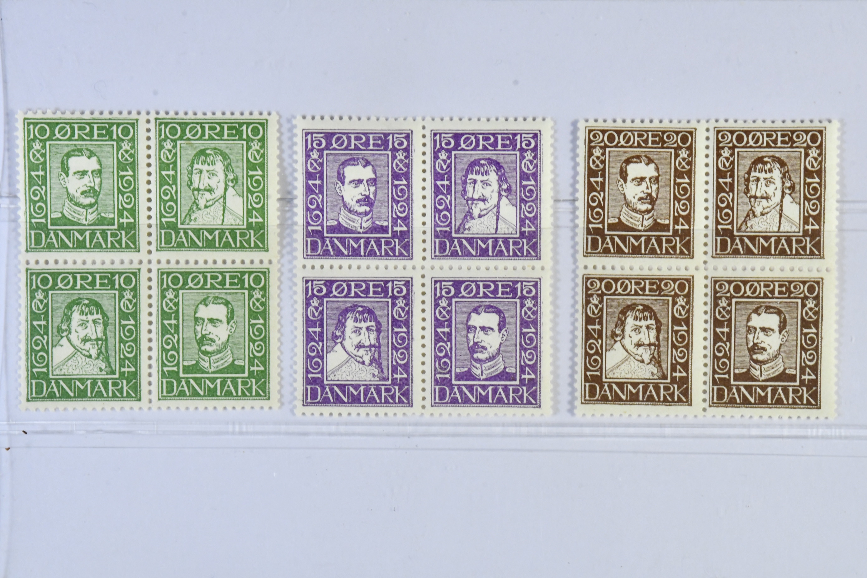 Denmark. Facit 201–12bl ★★, 1924 300th anniversary of the Post Office SET block of four (12). SEK 1500
