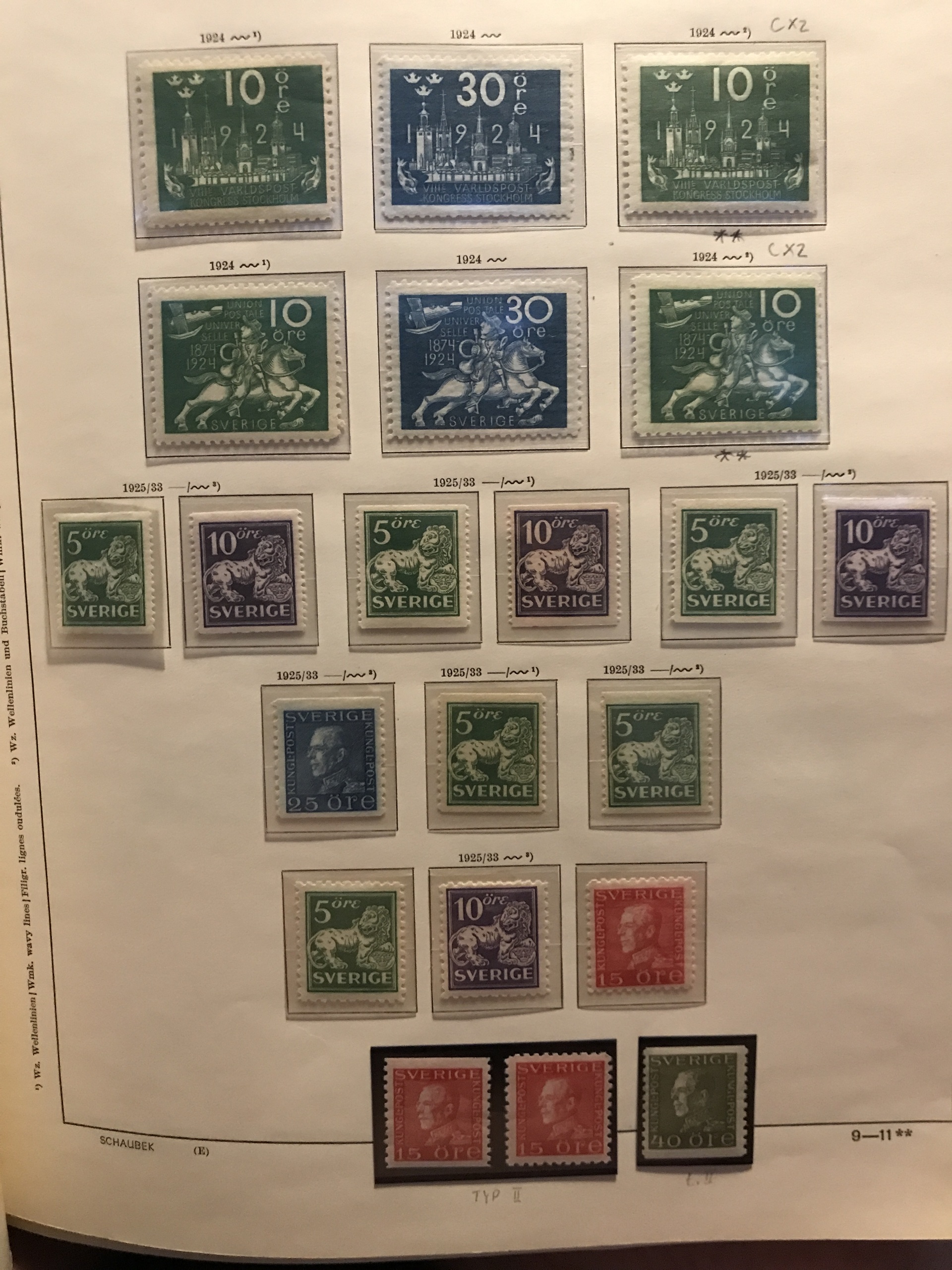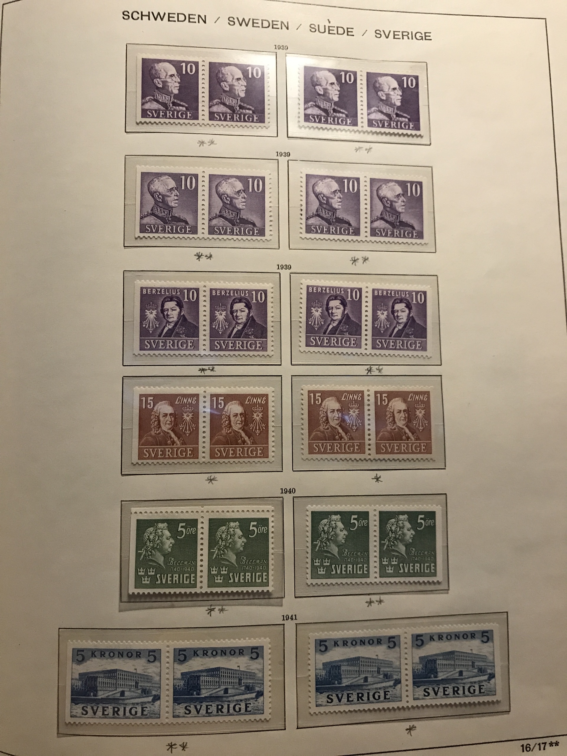 Sweden. ★★/★. Collection 1858-1963 in Schaubek album incl. good Circle types and GV Medallion, cpl Oscar, F65, cpl Landstorm, Congress and UPU mostly *, all BC/CB-pairs incl. e.g. both F273 and Berzelius and 332BC **, nice Coil stamps incl. e.g. 151Abz and 154b and bz **, good Officials, Postage due- and Military stamps etc. Mostly fine quality, some early (*). Please see a selection of scans at www.philea.se.
