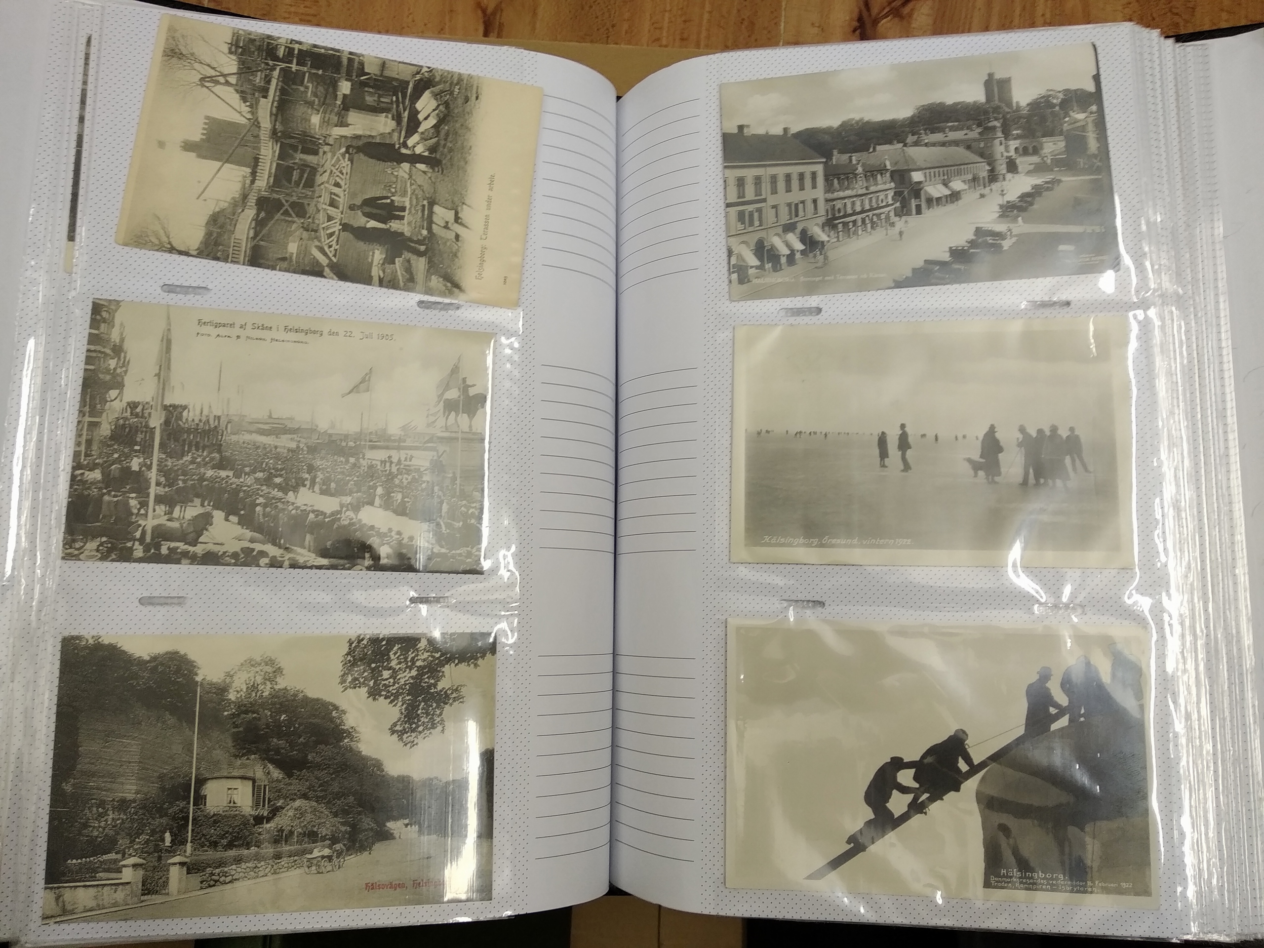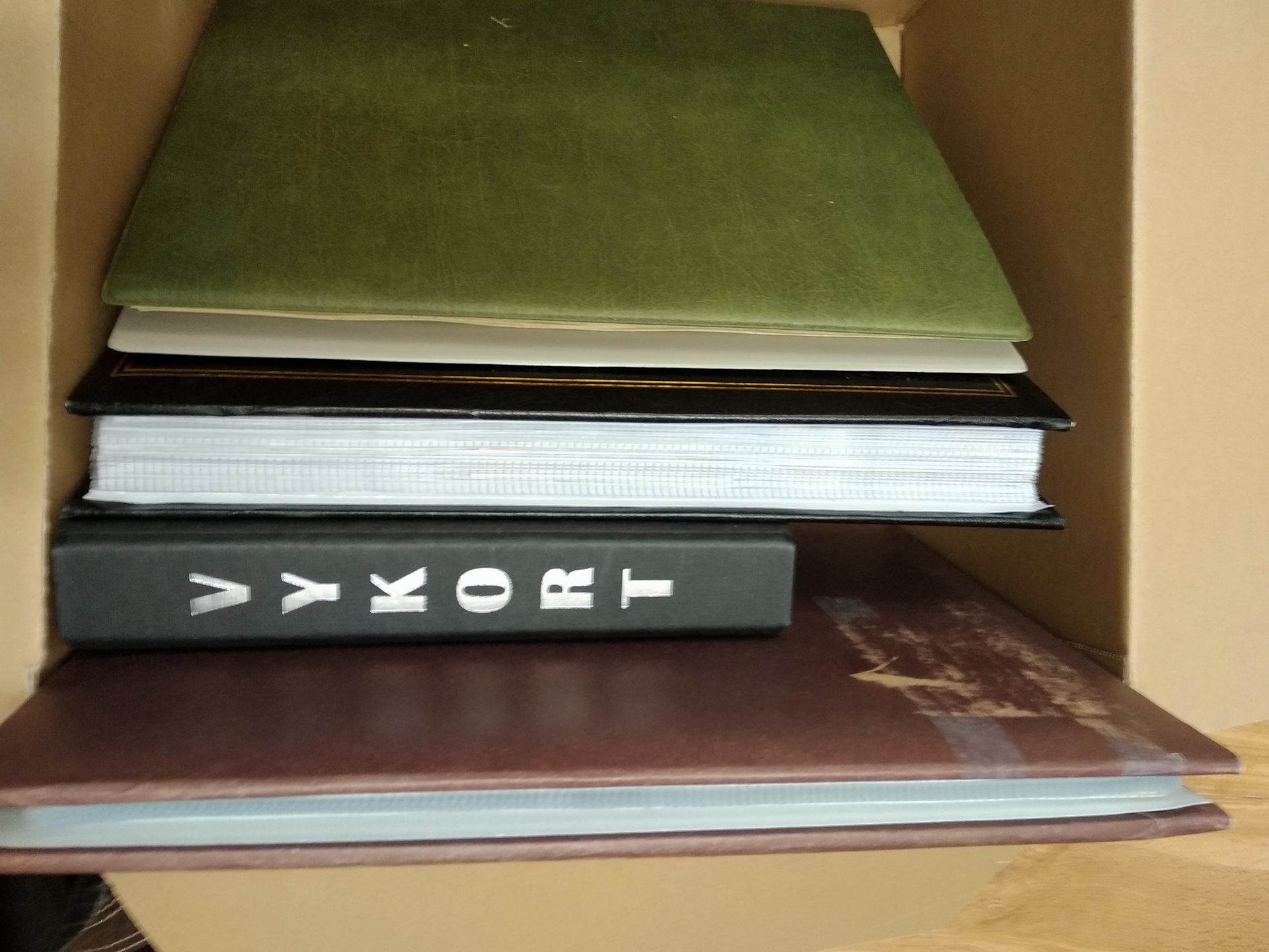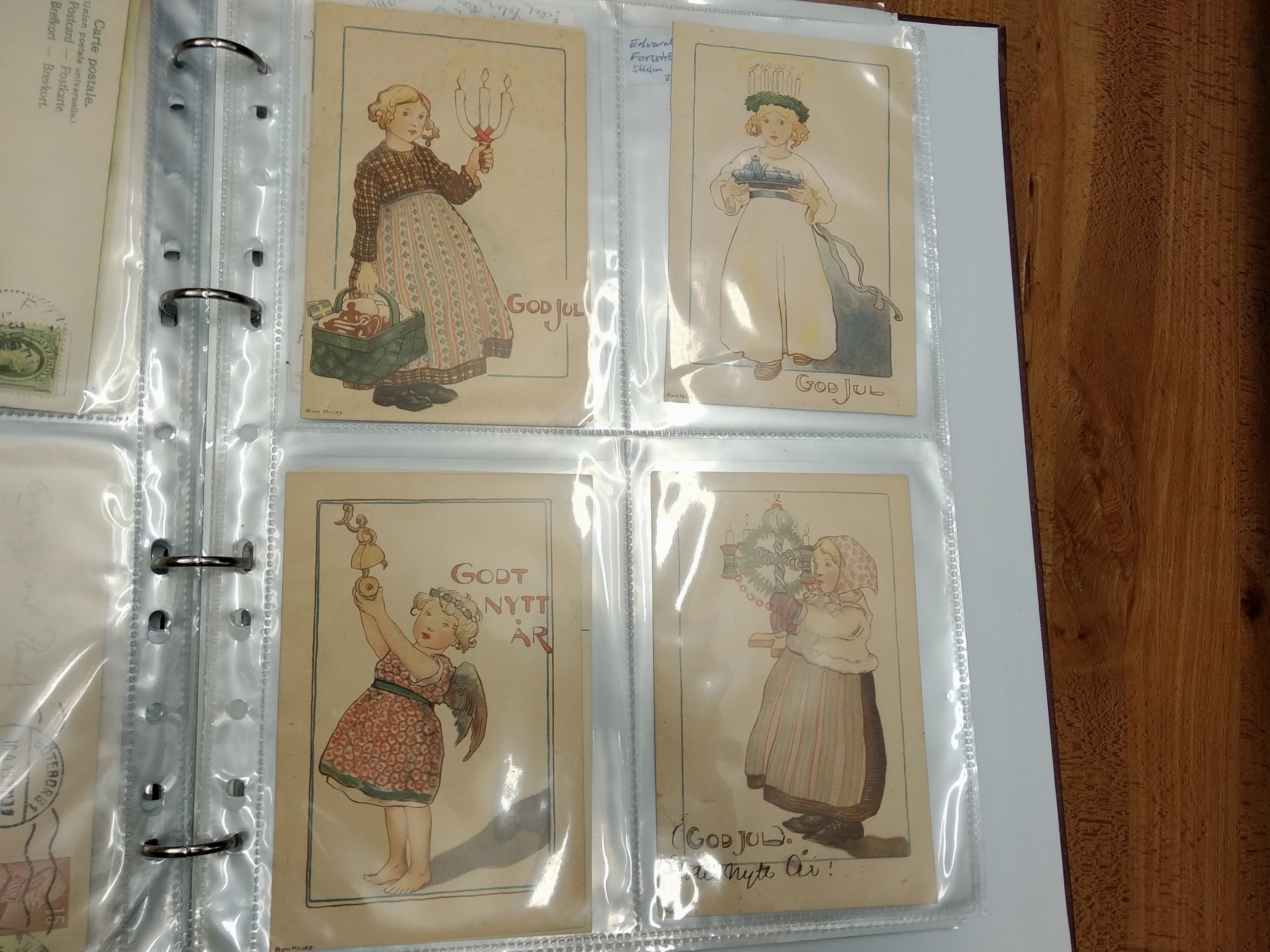 Sweden. Picture postcards, in box. Sweden and foreign topo and greetings, incl signed, Mostly old - 1950, in 4 albums. Mostly good quality. (approx 350)