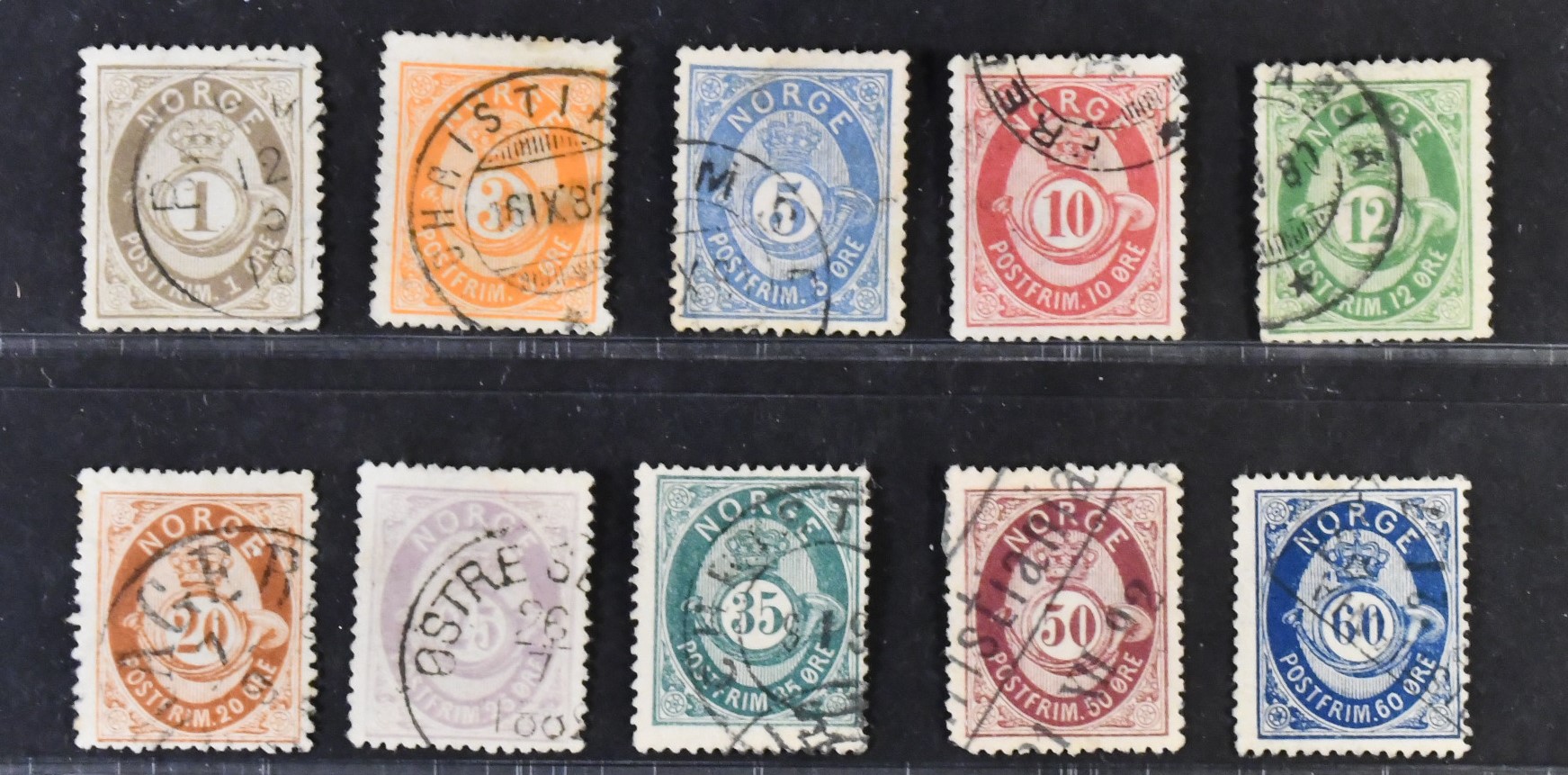 Norway. Facit 22–33 used, 1877-78 Shade posthorn SET (10). SEK 2300