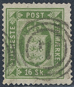 Denmark. Official Facit Tj3 used, 1871 Skilling values 16 sk green, perf 14 × 13½. SEK 2300