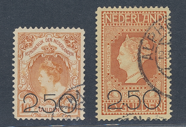 Netherlands. Michel 99–100 used, 1920 New value overprint on Queen Wilhelmina SET (2). EUR 200