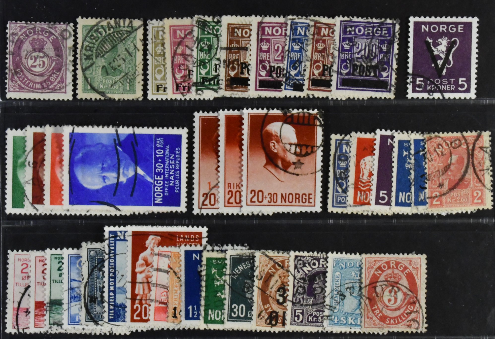 Norway. Used 1863–1952. All different, e.g. F 55V1, 90, 163-71, 196-201, 297, 305-07, L 12k. Mostly good quality. F SEK 6500 (20)