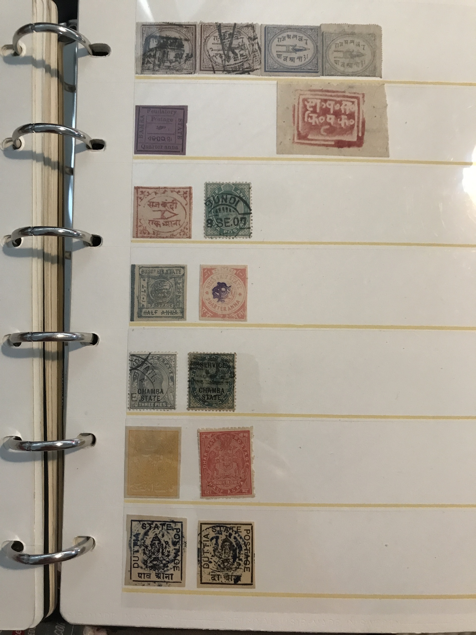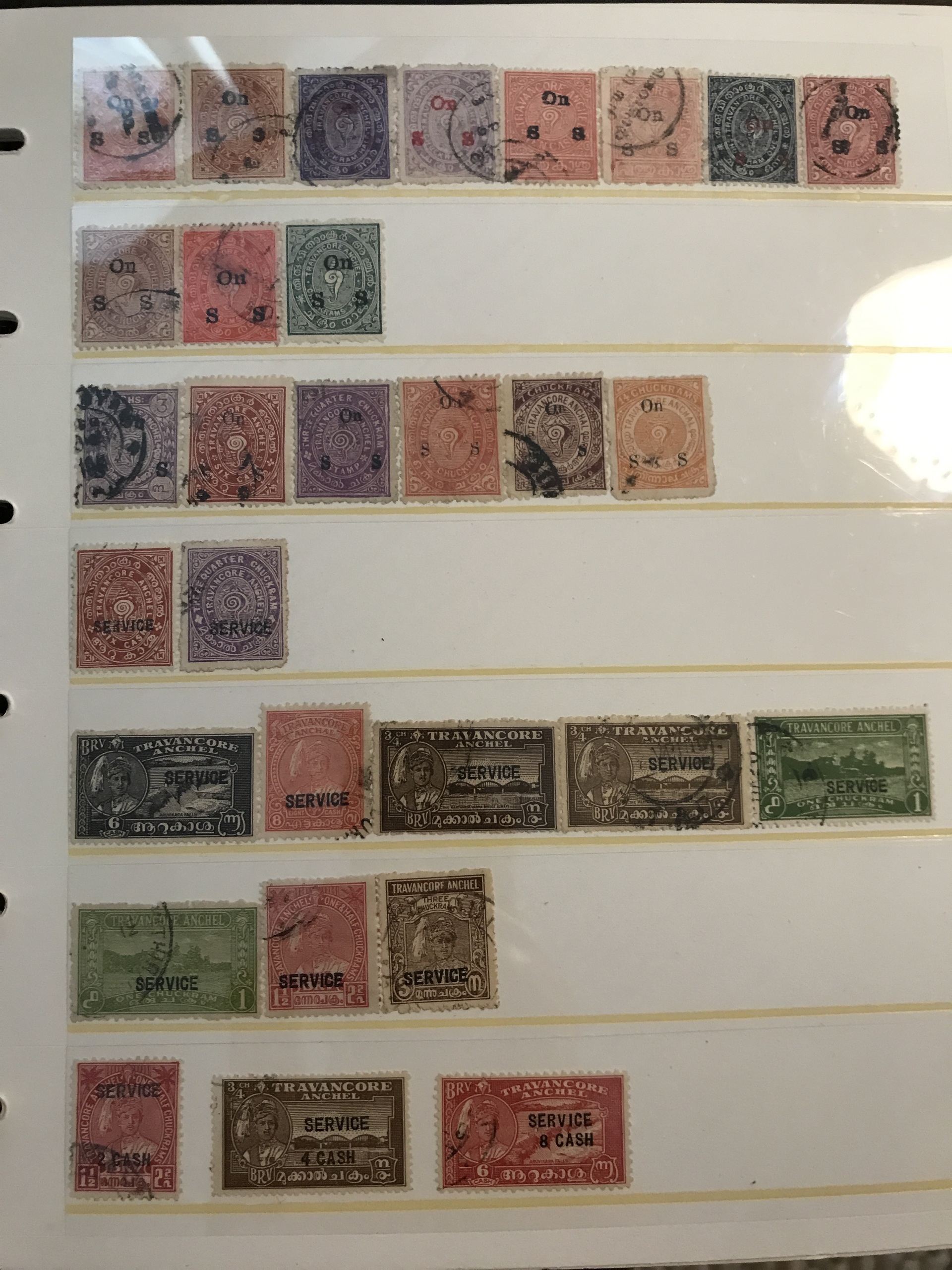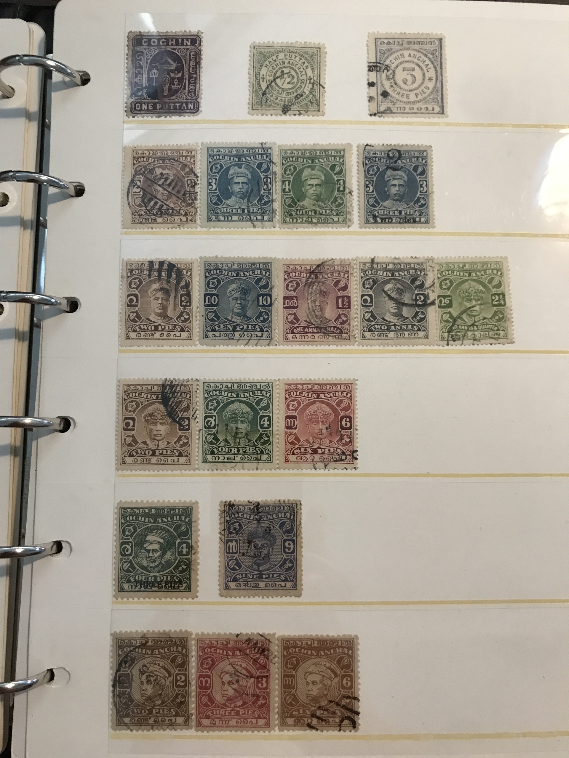 India. ★/⊙. Mostly used coll/accumulation classic-ca 1950 in Visir binder incl. also Cochin, Charkari, Gwalior, Hyderabad, Patiala, Travancore, Official stamps etc. (>500)