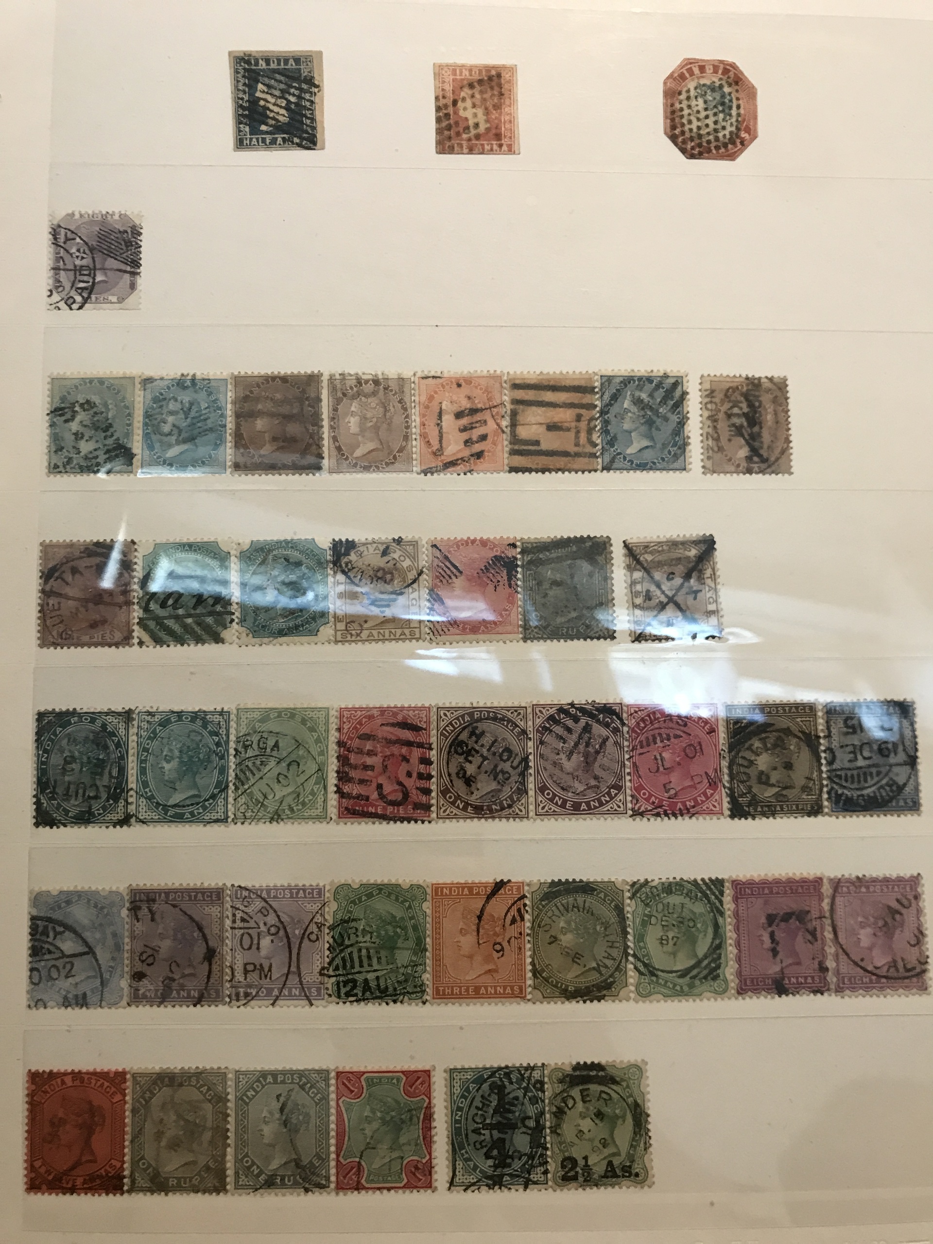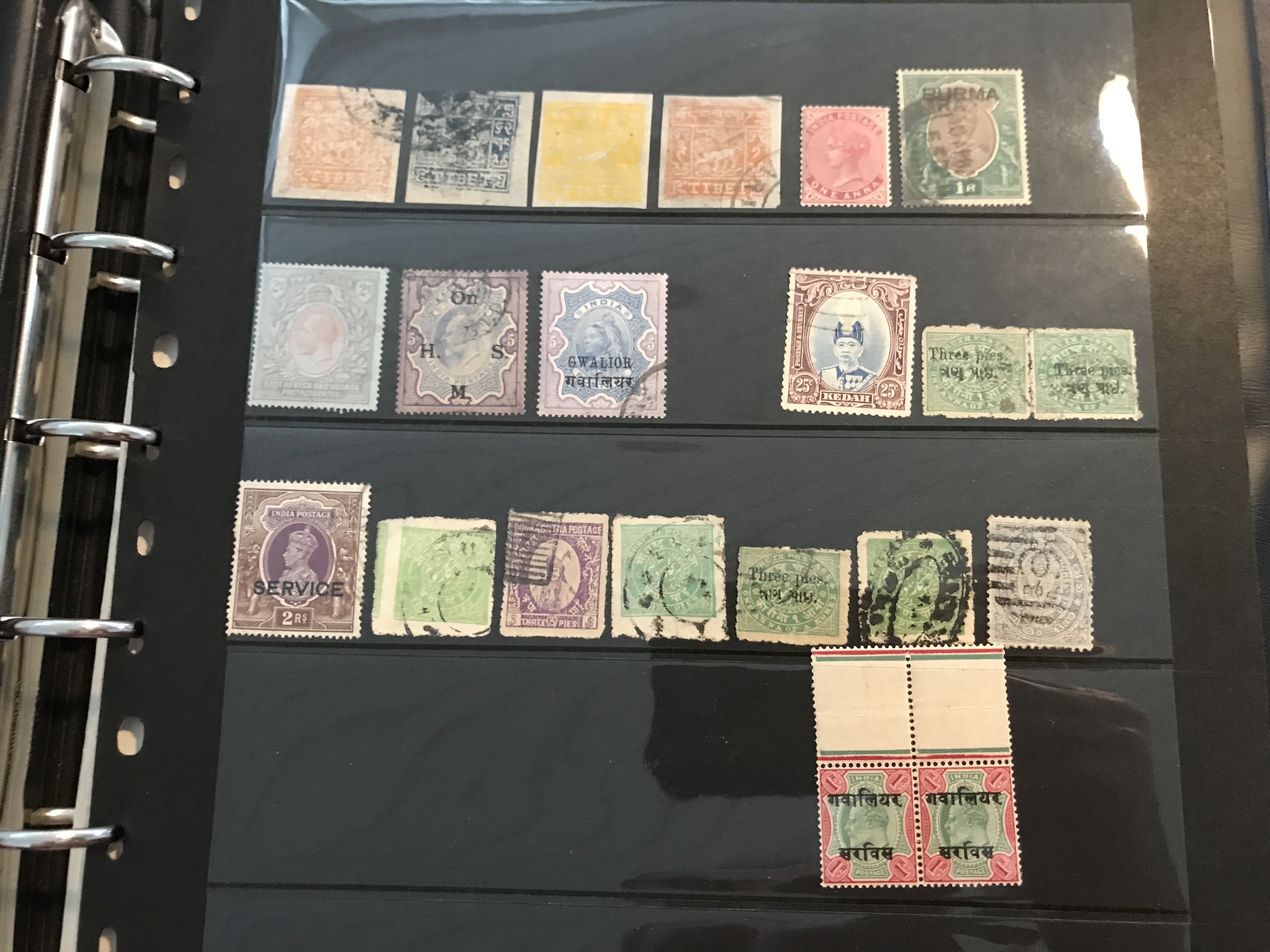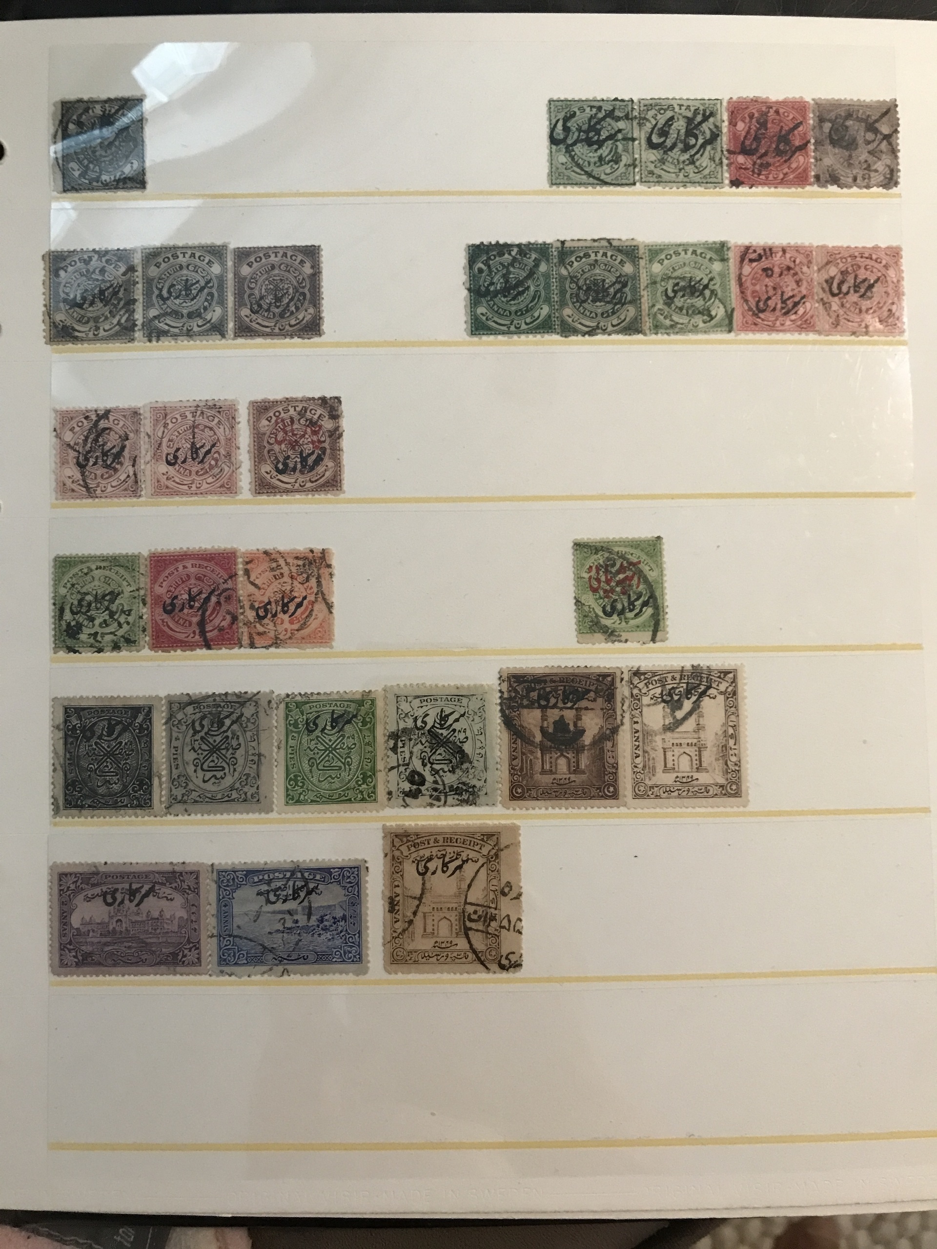 India. ★/⊙. Mostly used coll/accumulation classic-ca 1950 in Visir binder incl. also Cochin, Charkari, Gwalior, Hyderabad, Patiala, Travancore, Official stamps etc. (>500)