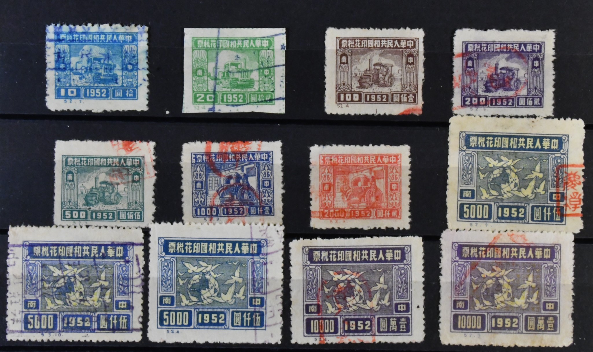 China. Seal ★, South Central China 1952 (12). Top values in different types.