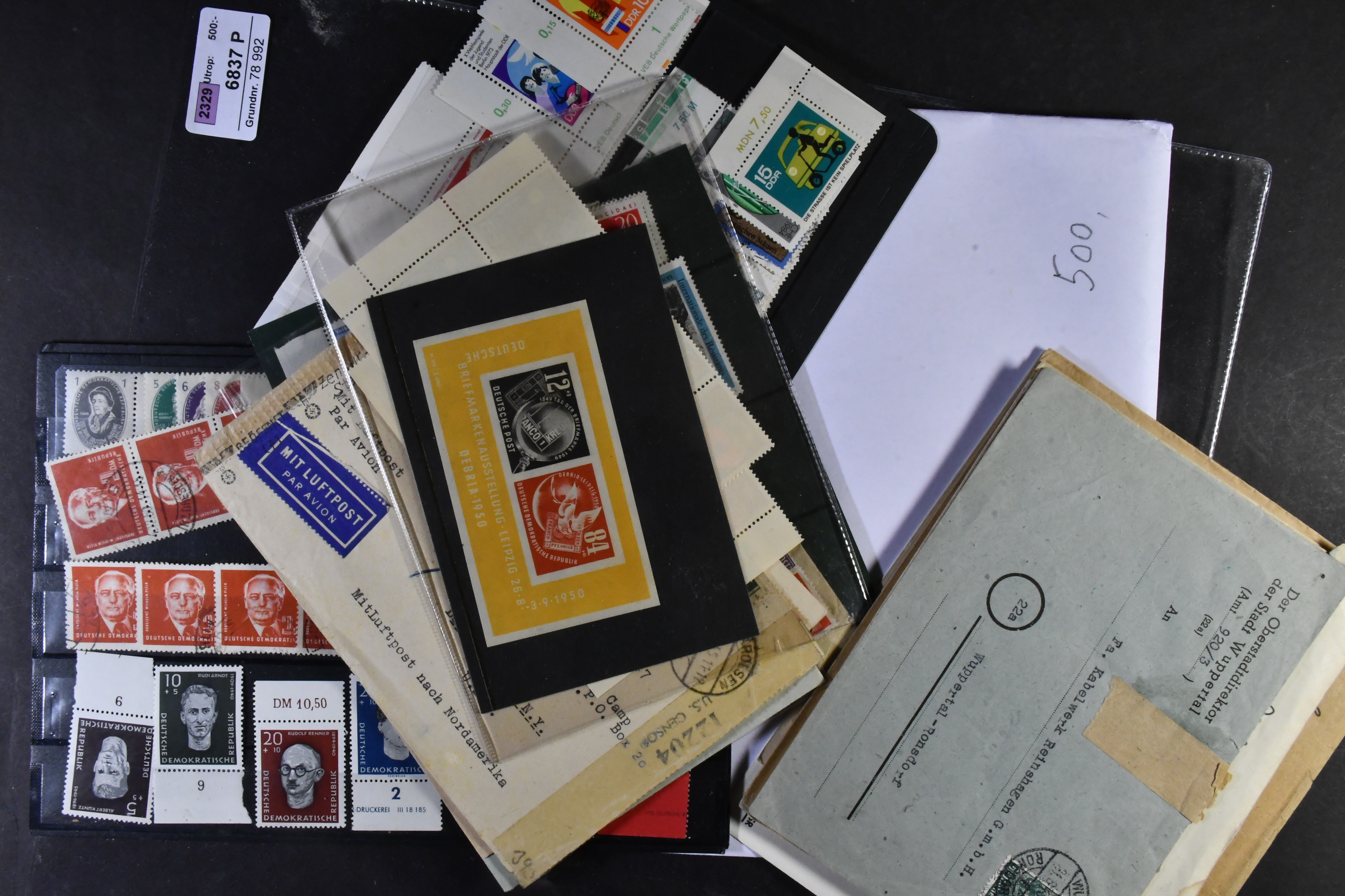 Germany, mixed. ★★/★/⊙. Accumulation covers stamps and s/s. E.g. Science academy, Debria s/s ** and some hundred used mostly GDR stamps.
