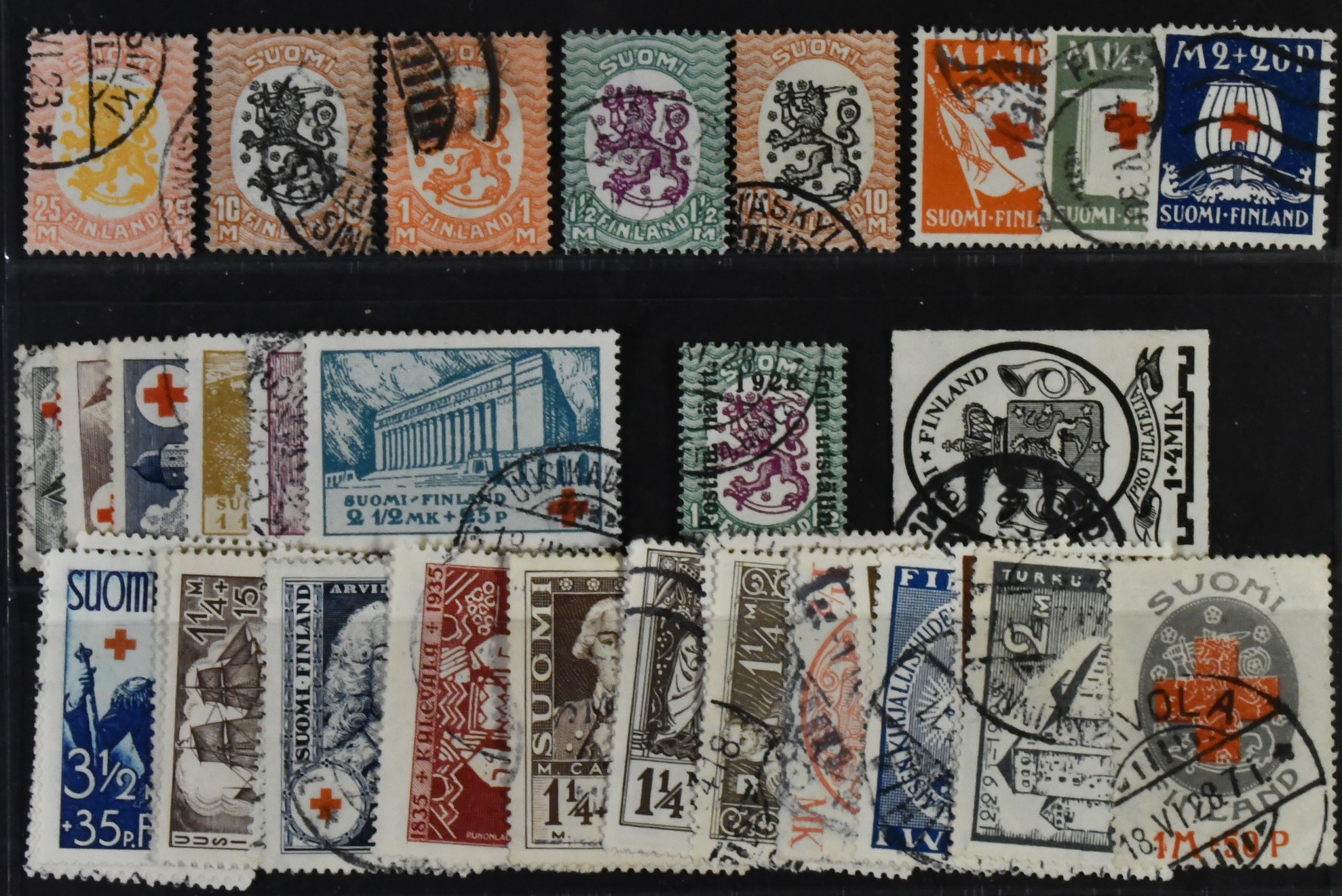 Finland. Used 1917–1938. All different, e.g. F 107, 116RW1, 121, 129(perf 14*14), 133, 162-64, 168-70, 173, 177-79. Mostly good quality. F SEK 5075 (46)