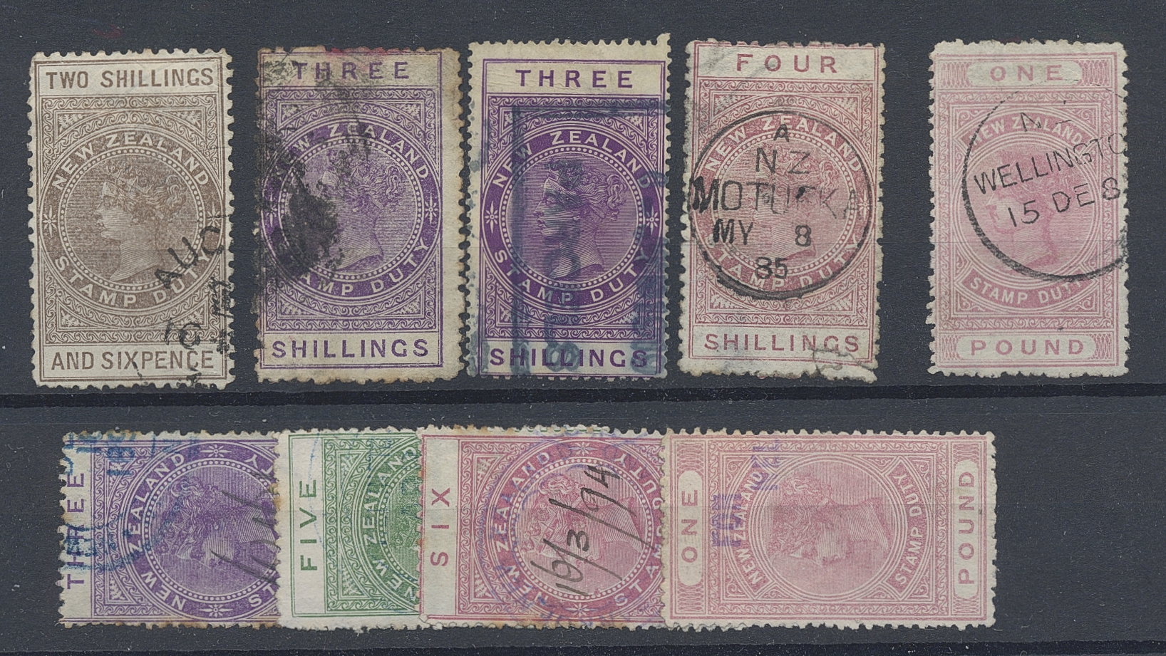 New Zealand. Used. Small lot of 7 postal fiscals, several postally used. somwhat mixed quality, but £1 fine.