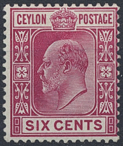 Ceylon. SG 269a ★, 1903 King Edward VII 6 c carmine-rose wmk CA crown invered wmk. GBP 140