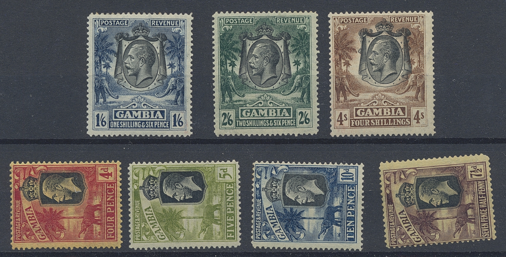 Gambia. SG 129–40 ★, 1922 Elephants 4 d to 4s group 7 different. GBP 165