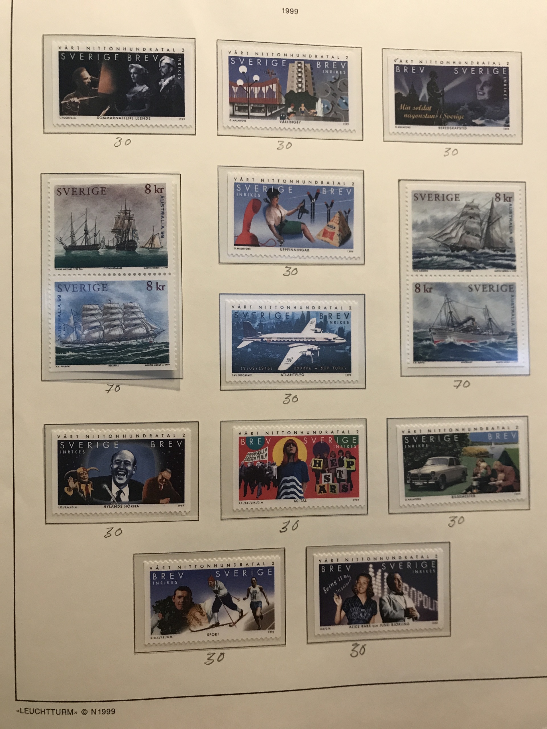 Sweden. Face value. Collection 1975–1999 in Leuchtturm album incl. e.g. all discount stamps. Face value > 5600.