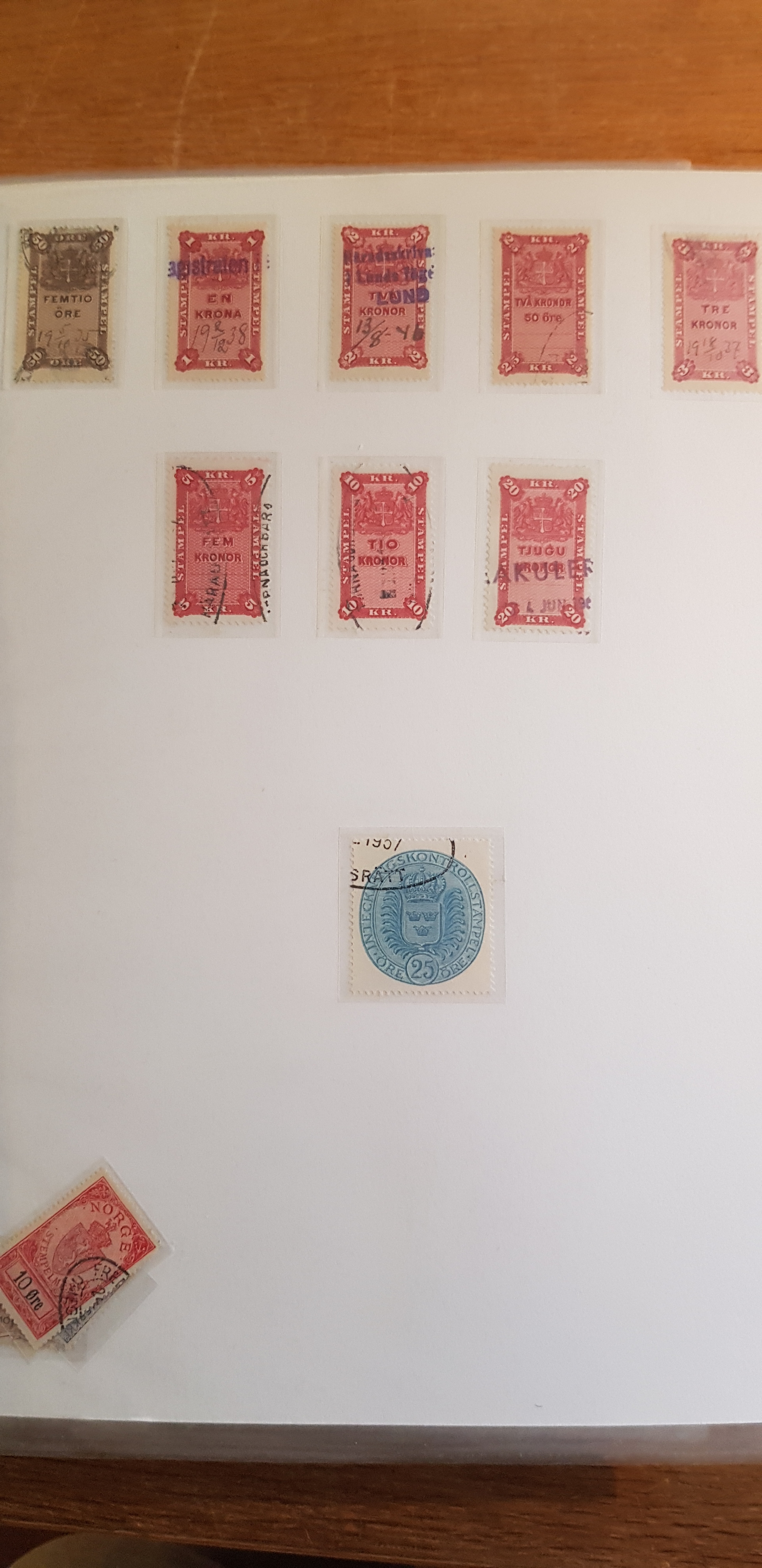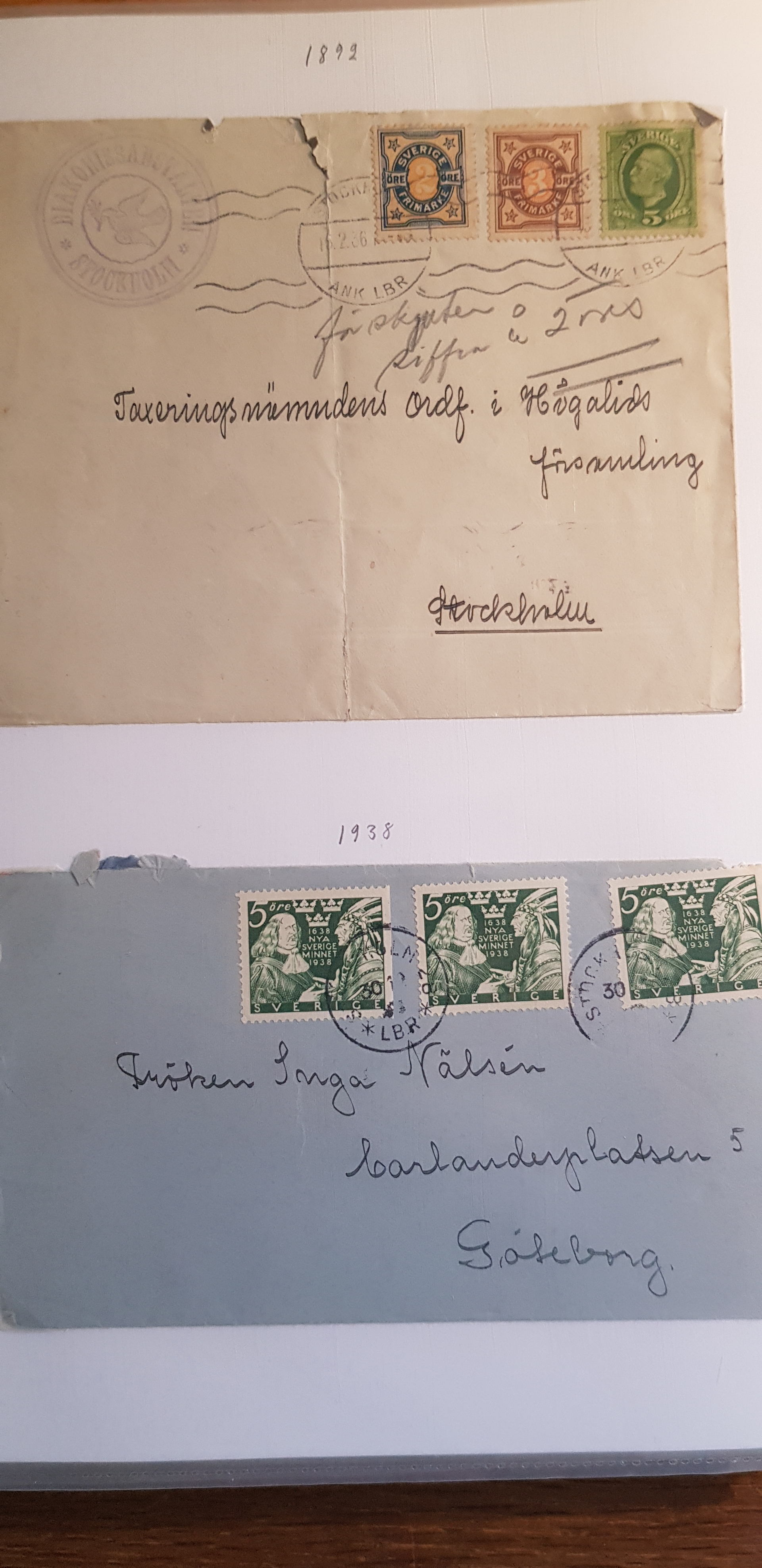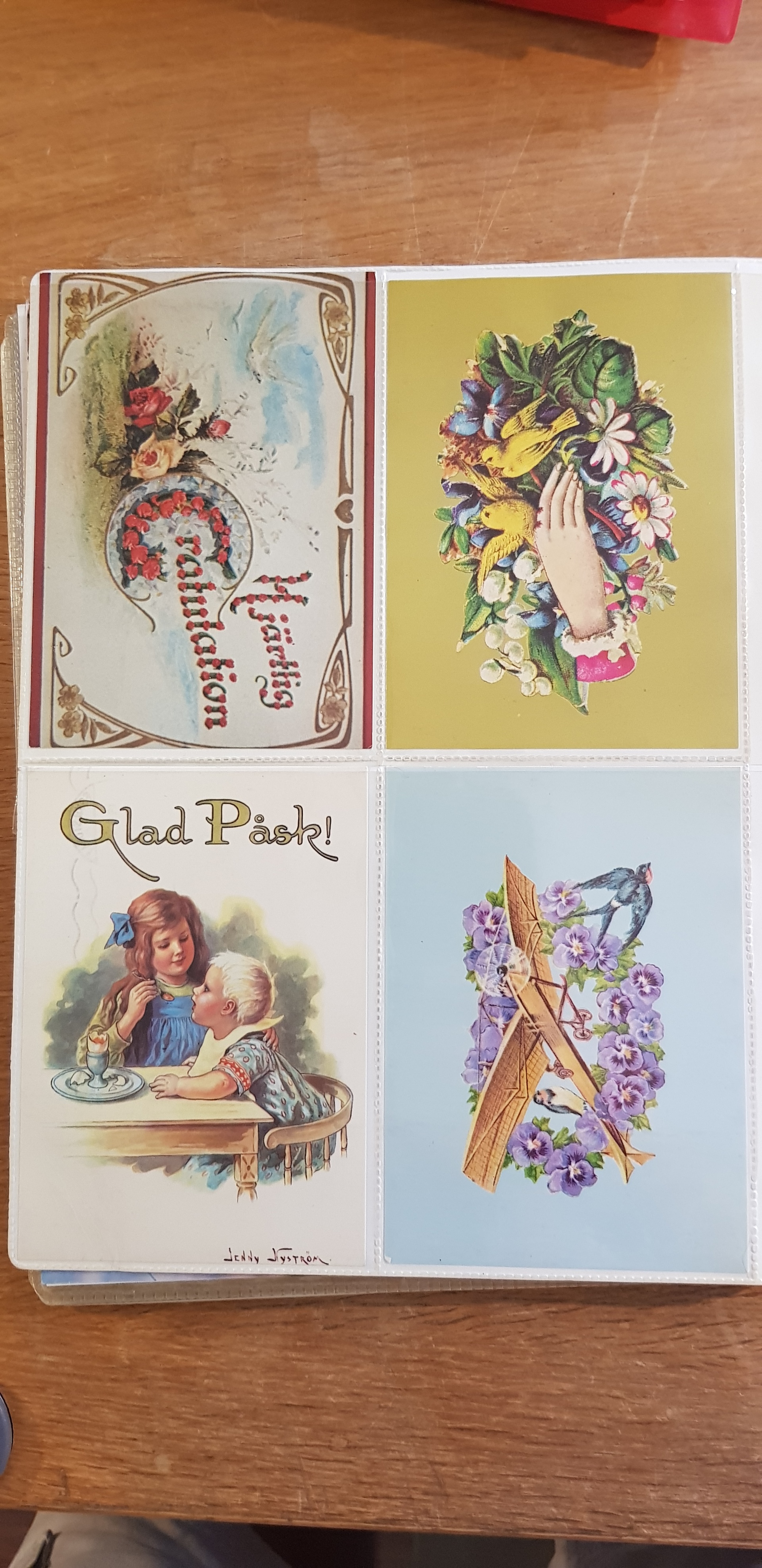 Sweden. Picture postcards, accumulation 1800s–1900s in box. One album that contains of envelopes and different tax receipts. Two smaller albums with postcards and envelopes incl. some interesting. Also loose ones on leaves. Please see a selection of scans at www.philea.se. Mostly fine quality. Approx. 7 kg.