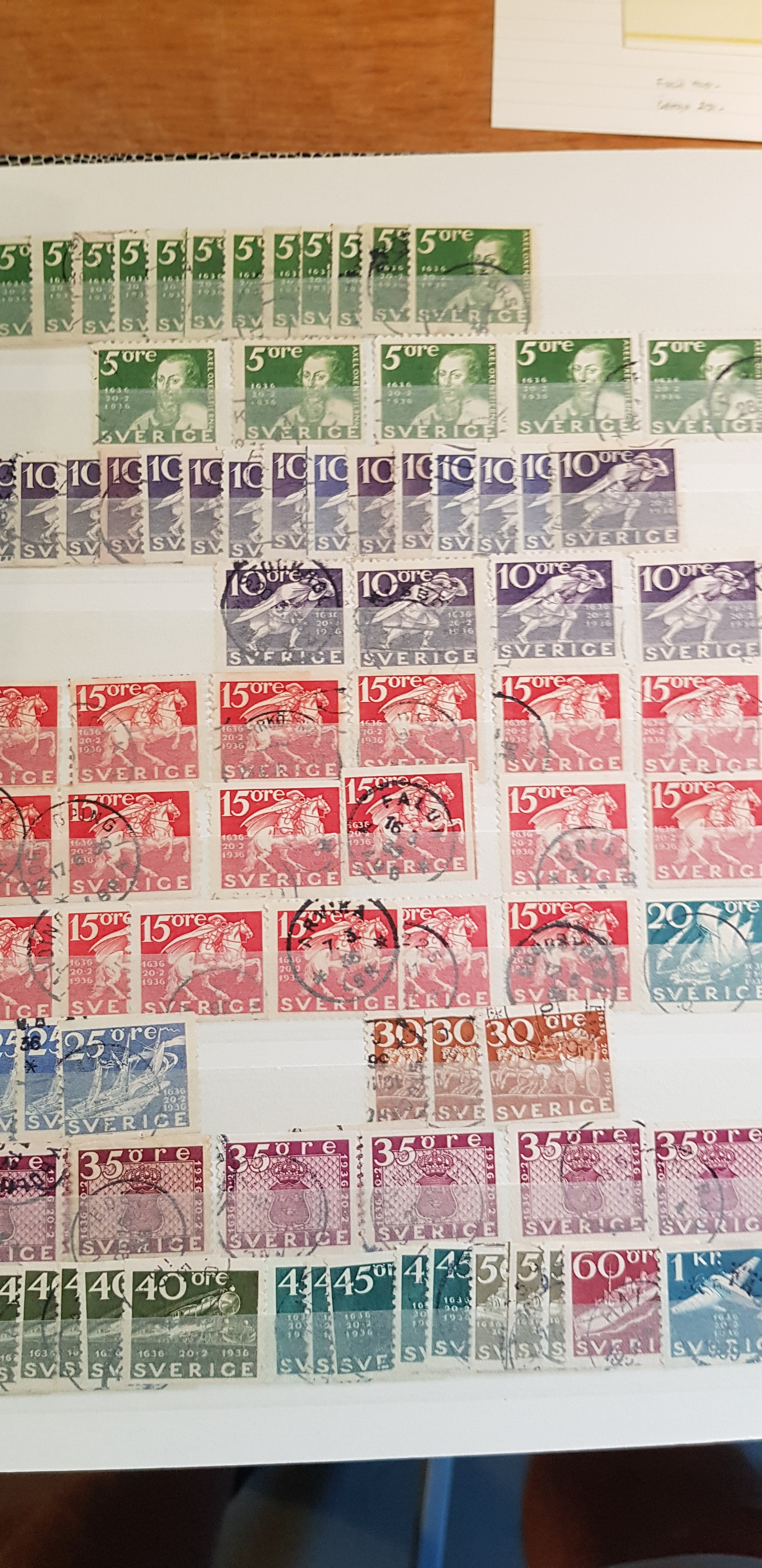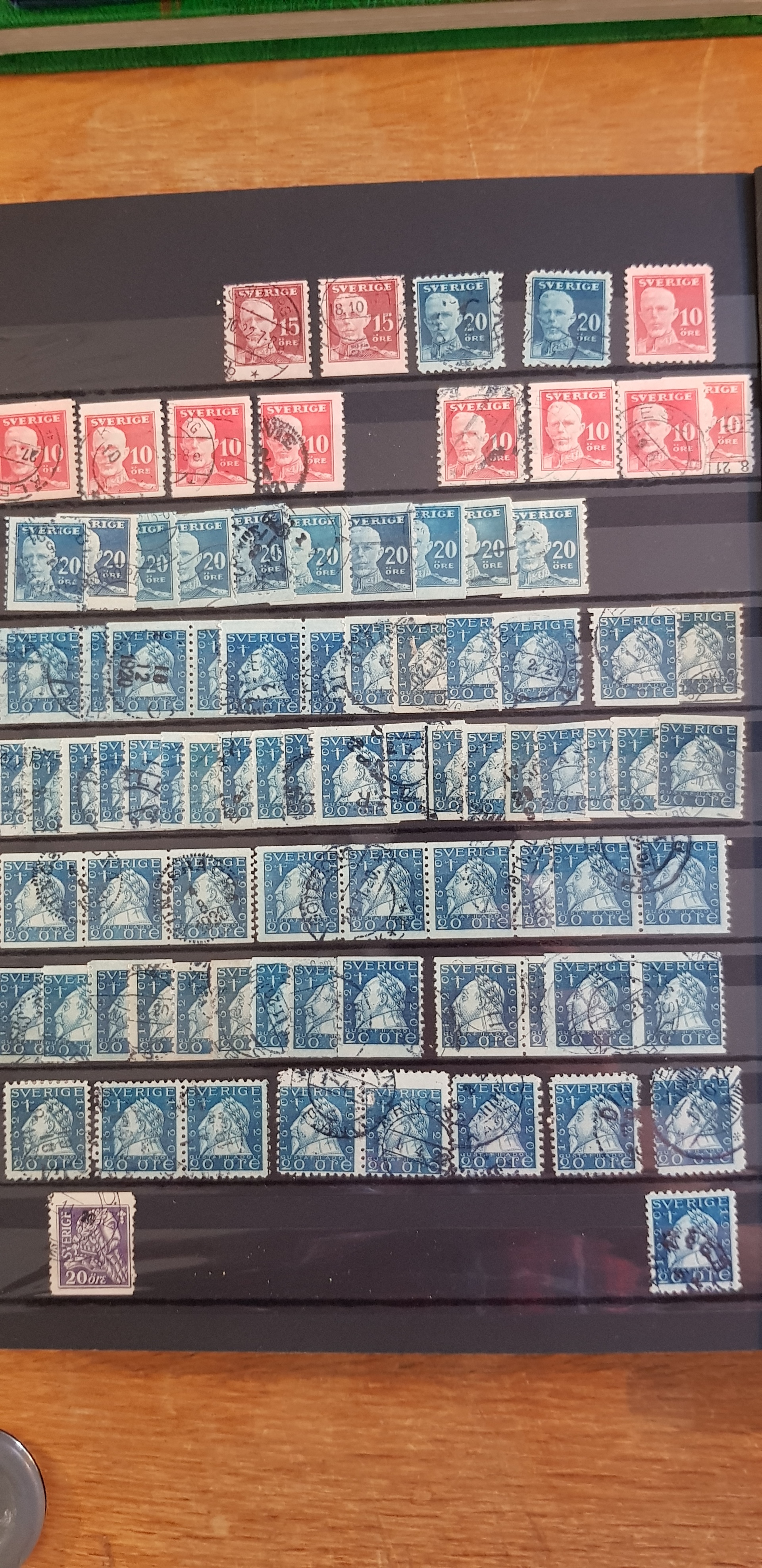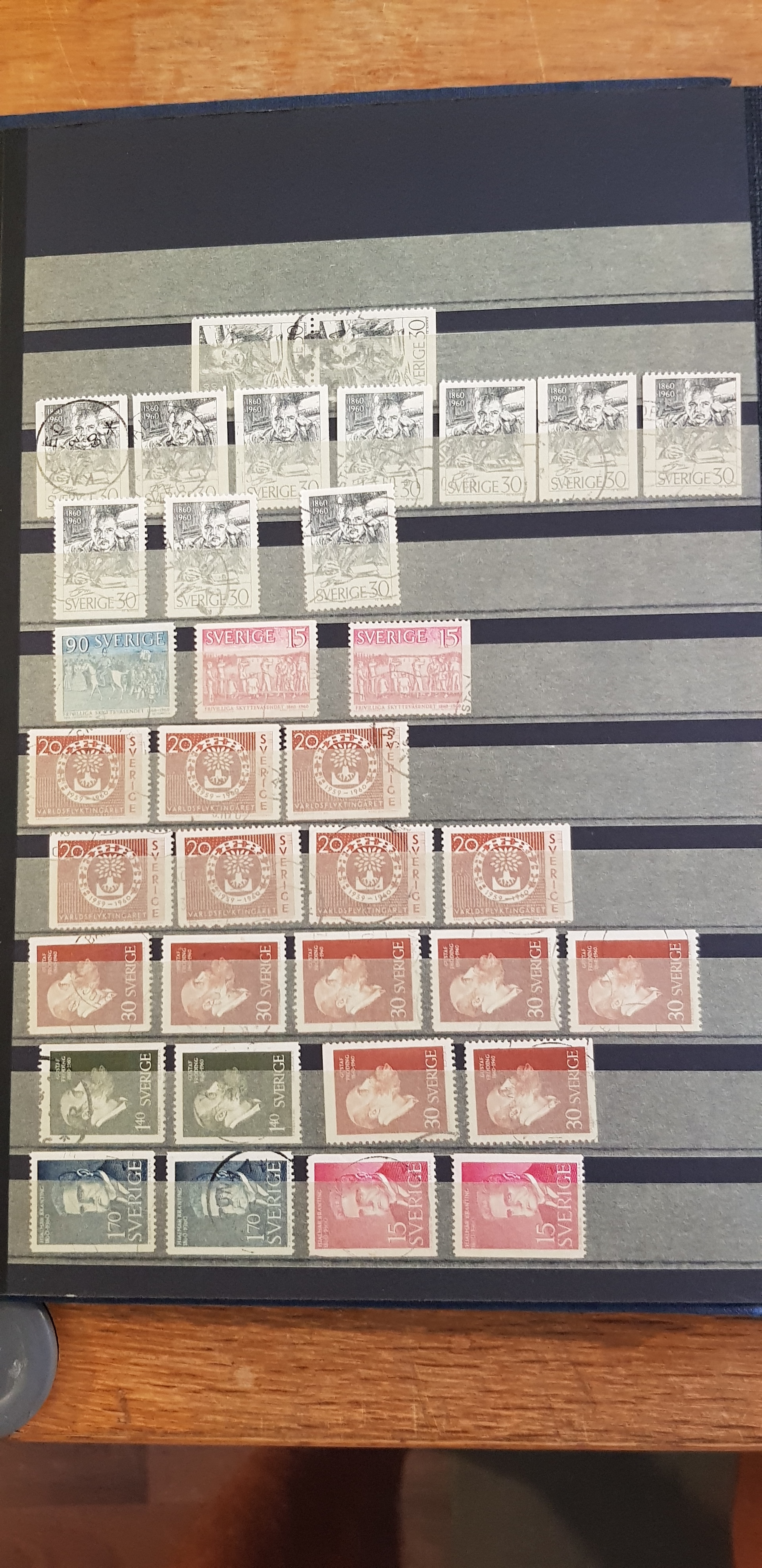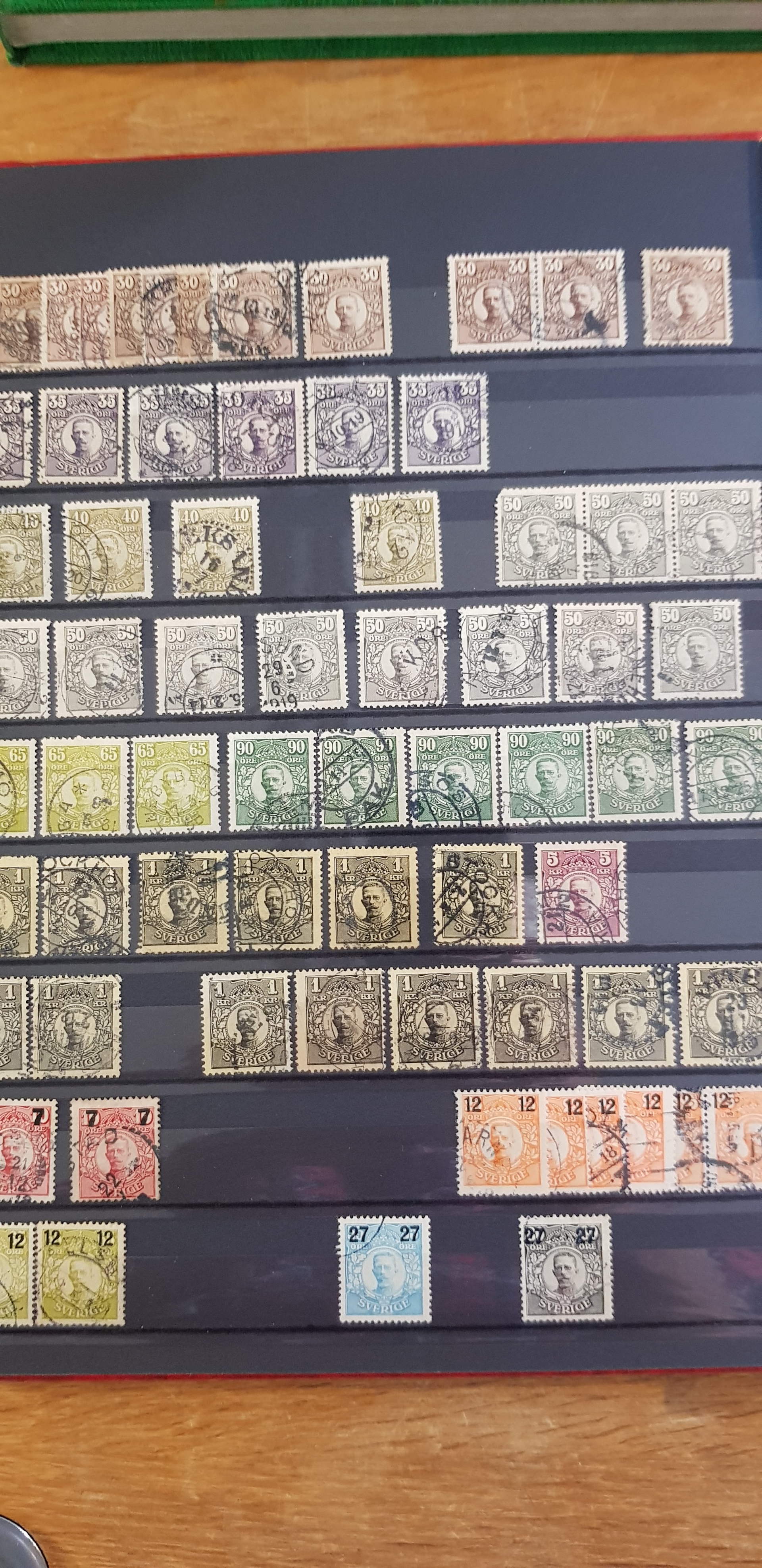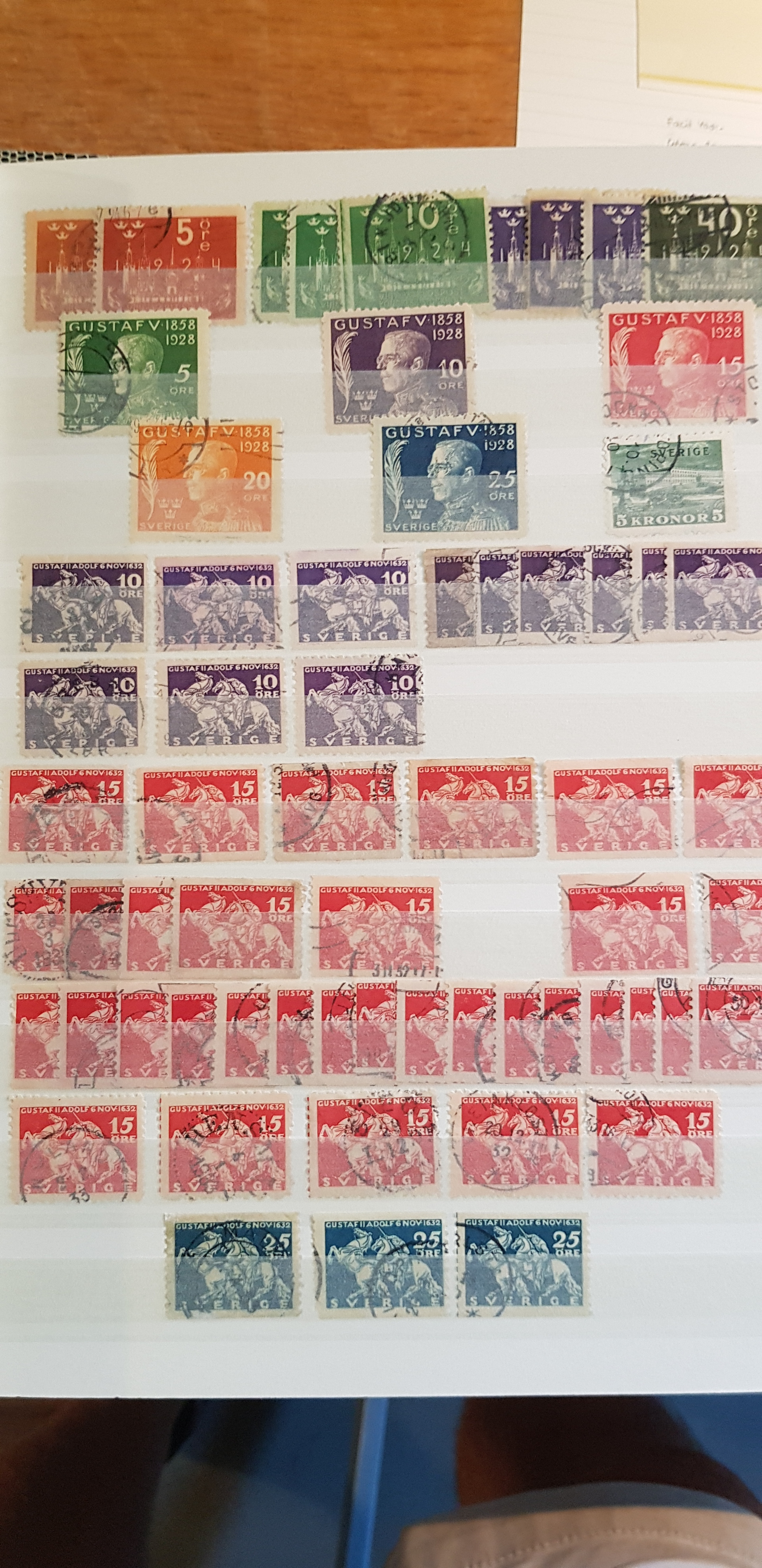 Sweden. Collection/accumulation used 1800s–1900s in box. One album which contains of Coat-Arms, Oscar II and so on. The second album contains of GV mainly. The third album are mainly stamps from the 1960s. In the fourth album 1940s–50s are represented and finally the fifth album contains Three Crowns from 1939–1969. Please see a selection of scans at www.philea.se. Good quality. (>2000)