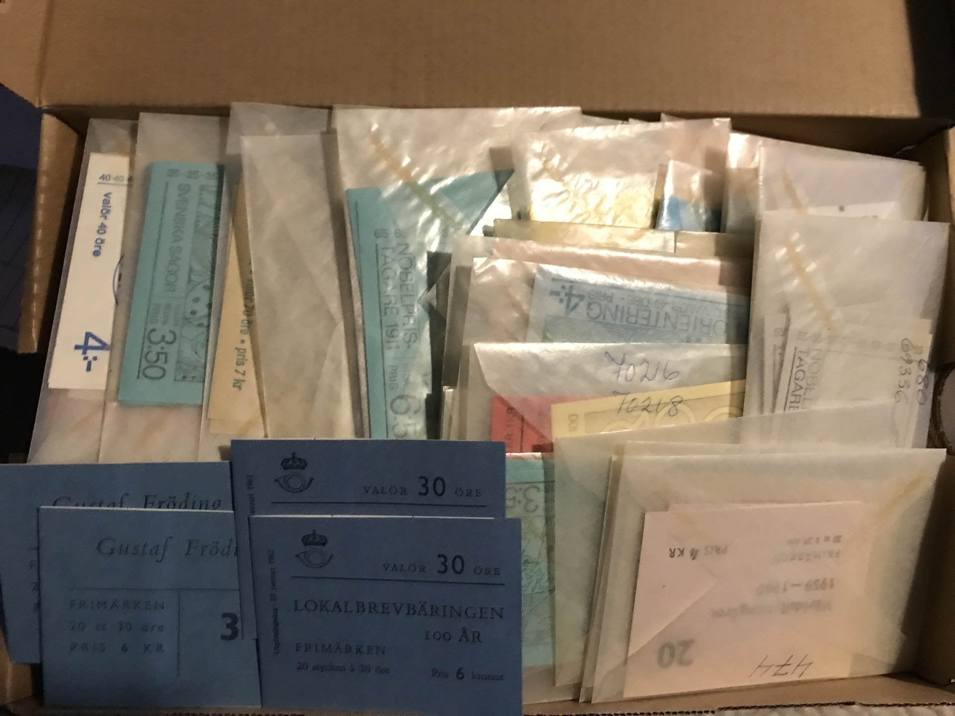 Sweden. Face value. Box with booklets mostly ca 1960–80 incl. some better ones. Face value approx. 4100.