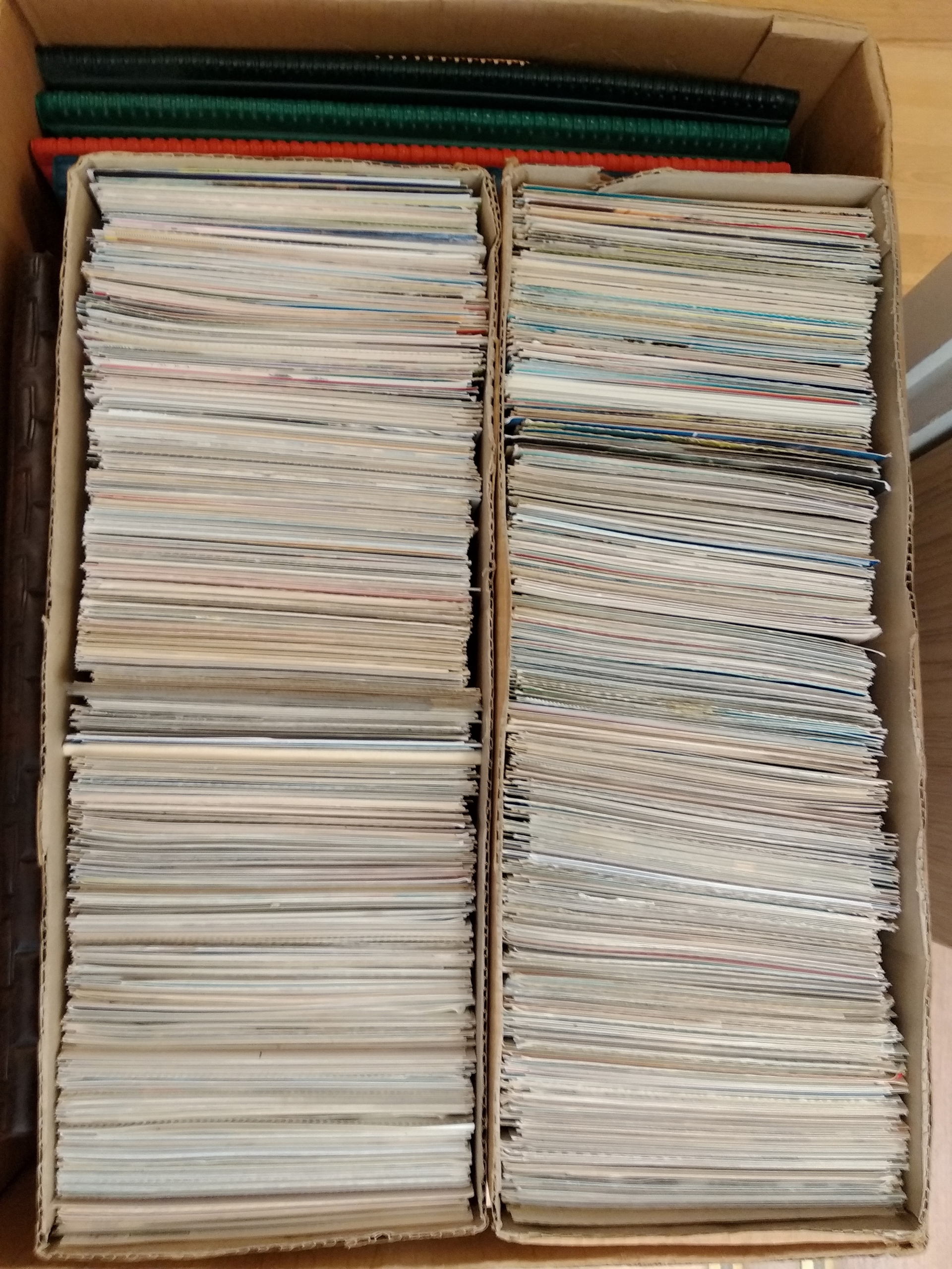 ALL WORLD. Picture postcards. Three banana boxes with modern postcards of different types, much Swedish lottery answers (tävlingssvar), but also other material (many thousands). Approx. 70 kg.