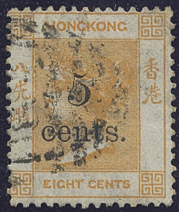 Hong Kong. Michel 24 used, 1880 Surcharge with new Value 5 c on 8 c orange, wmk crown CC. EUR 150