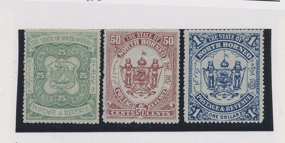 Malayan states, Labuan. SG 80–82a ★, 1896 Stamps of North Borneo in new colours with omitted overprints. GBP 115