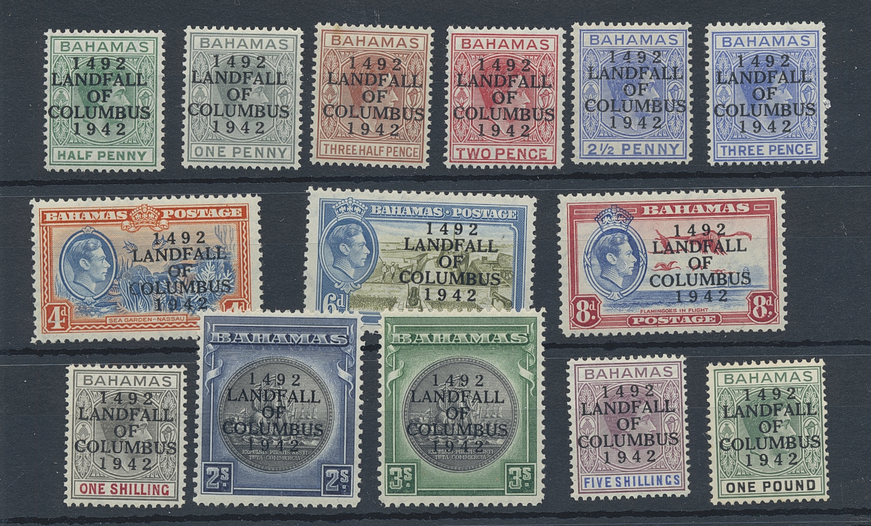 Bahamas. Michel 121–34 ★, 1942 Landfall of Columbus 1492 SET (14). The 31 value is the brown streaky gum variety (see note in SG). SG 162–75a. EUR 60