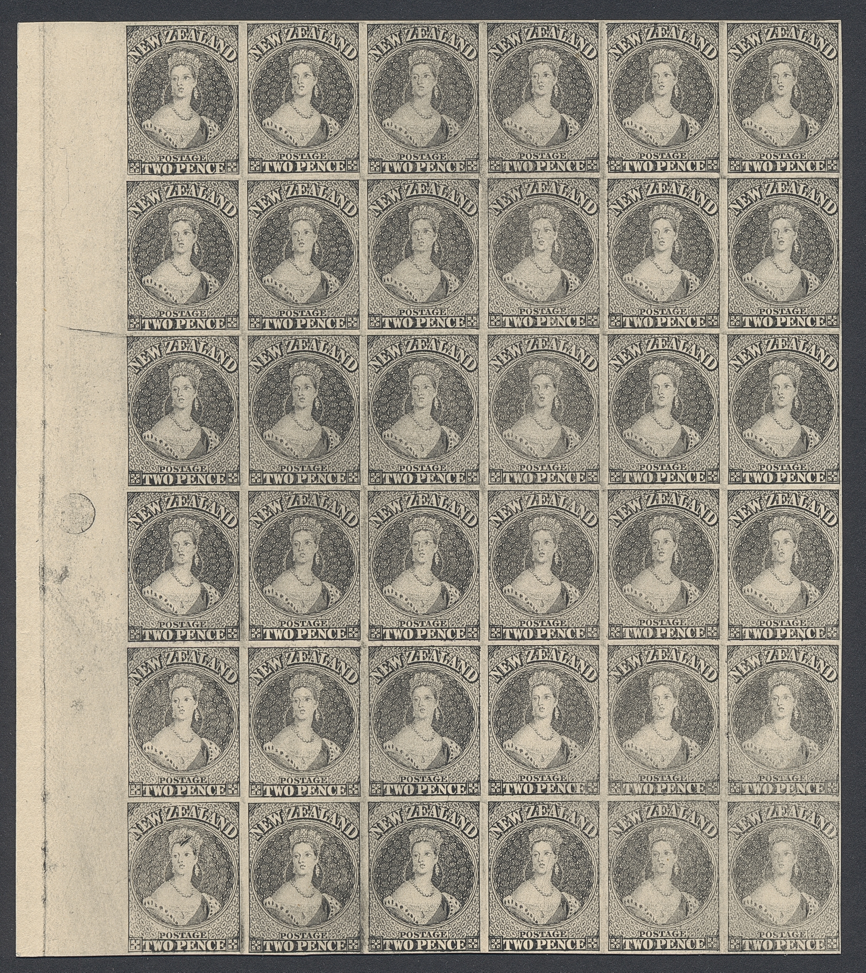 New Zealand. (★), 1905 Hausburg reprint thick paper without gum on card, very fine block of 36.