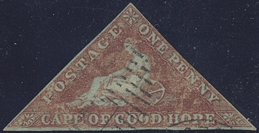 South Africa. Michel 1 IWb used, 1853 1p pale brick red on blued paper.