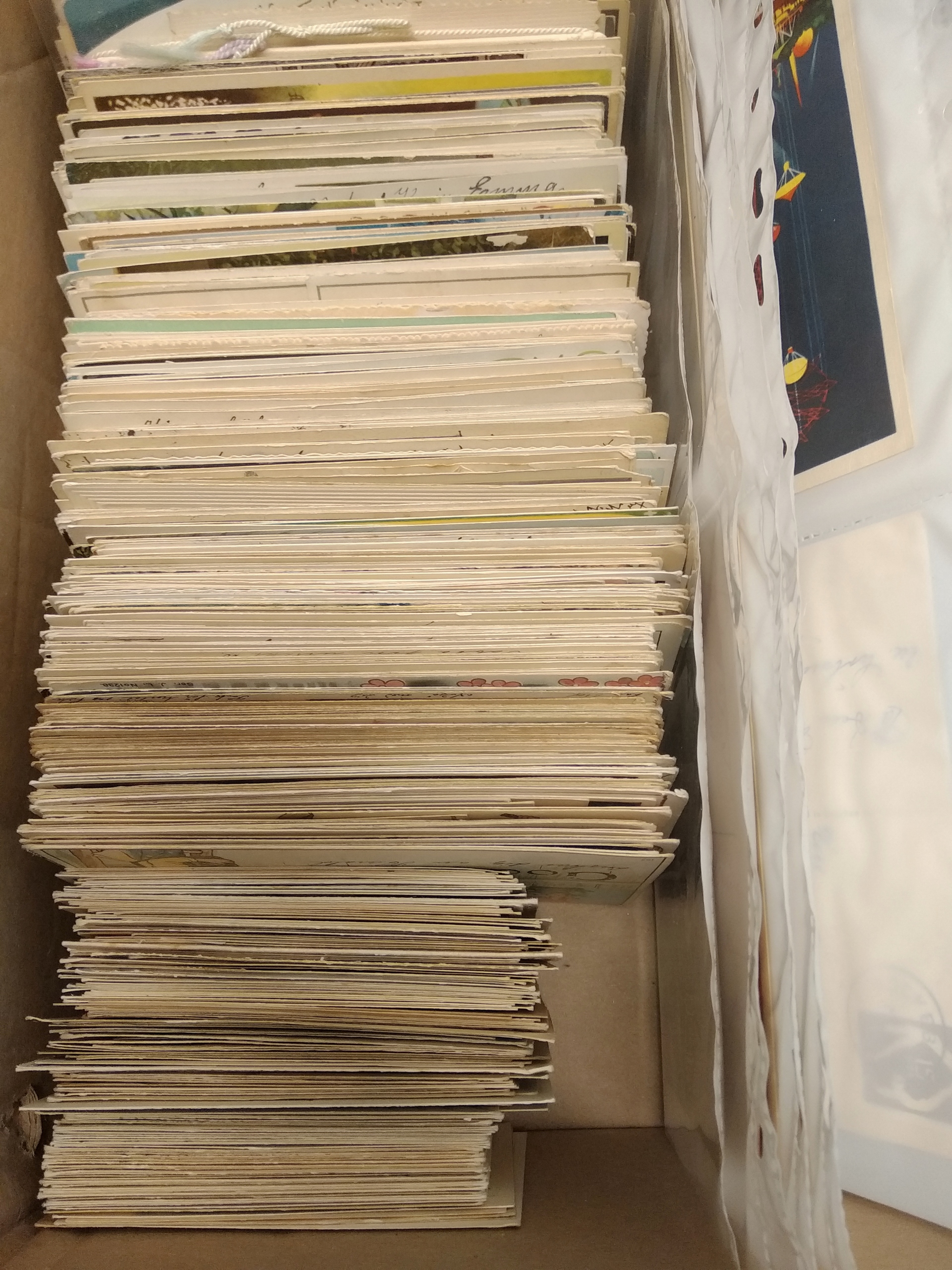 Sweden. Picture postcards, in box. Thematic, greetings and signed, mostly 1900-40, incl some foreign, 400-500 + approx 100 in smallest size. Mostly good quality.