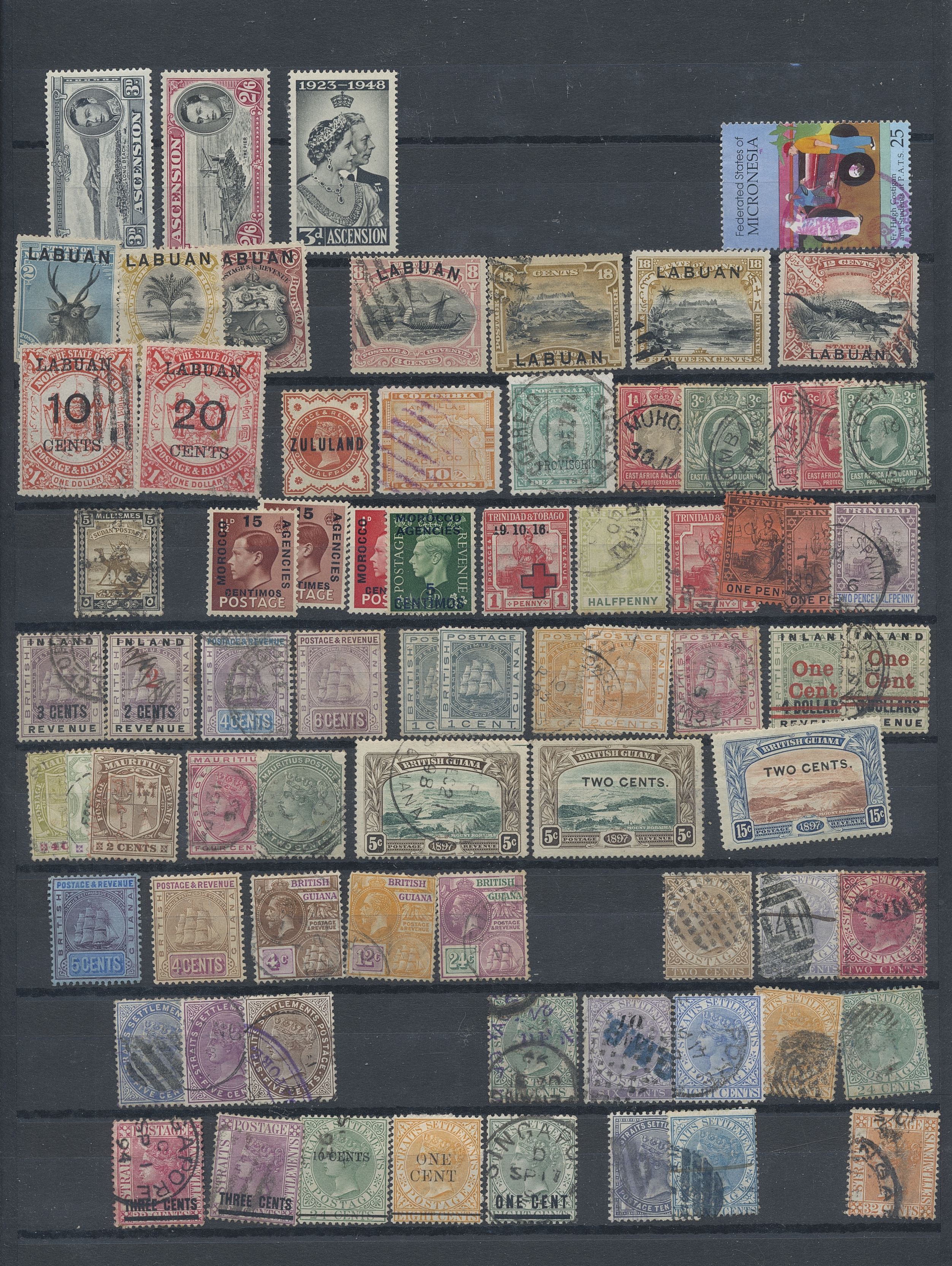 ALL WORLD. Accumulation ★/⊙ 1860s–1970s on four stockbook pages and some stockcards. United Kingdom and Commonwealth. A selection of scans are presented at www.philea.se. (approx.700)