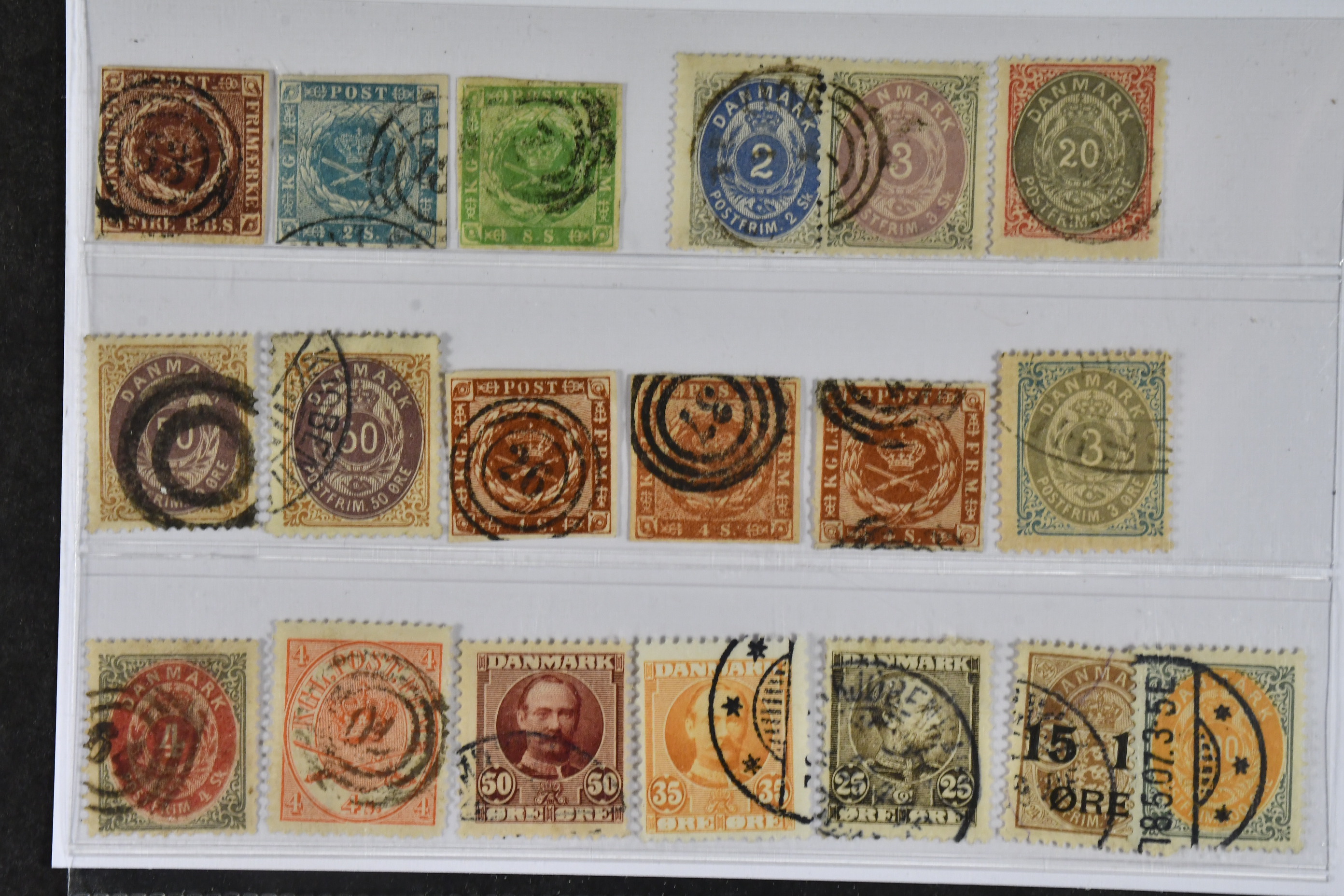 Denmark. Used 1851–1912. All different, e.g. F 2-3, 5, 20-21, 34, 36, 44. Mostly good quality. F SEK 5045 (19)