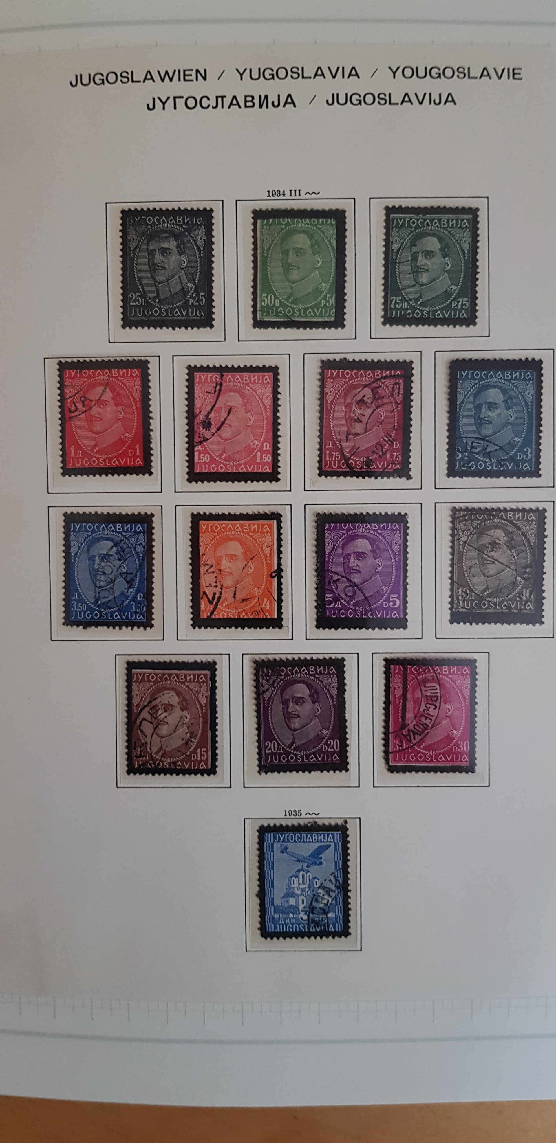 Yugoslavia. Collection mostly used 1921–43 in large album with stamp mounts. Almost complete with only a few empty slots. Mostly fine quality. (>500)