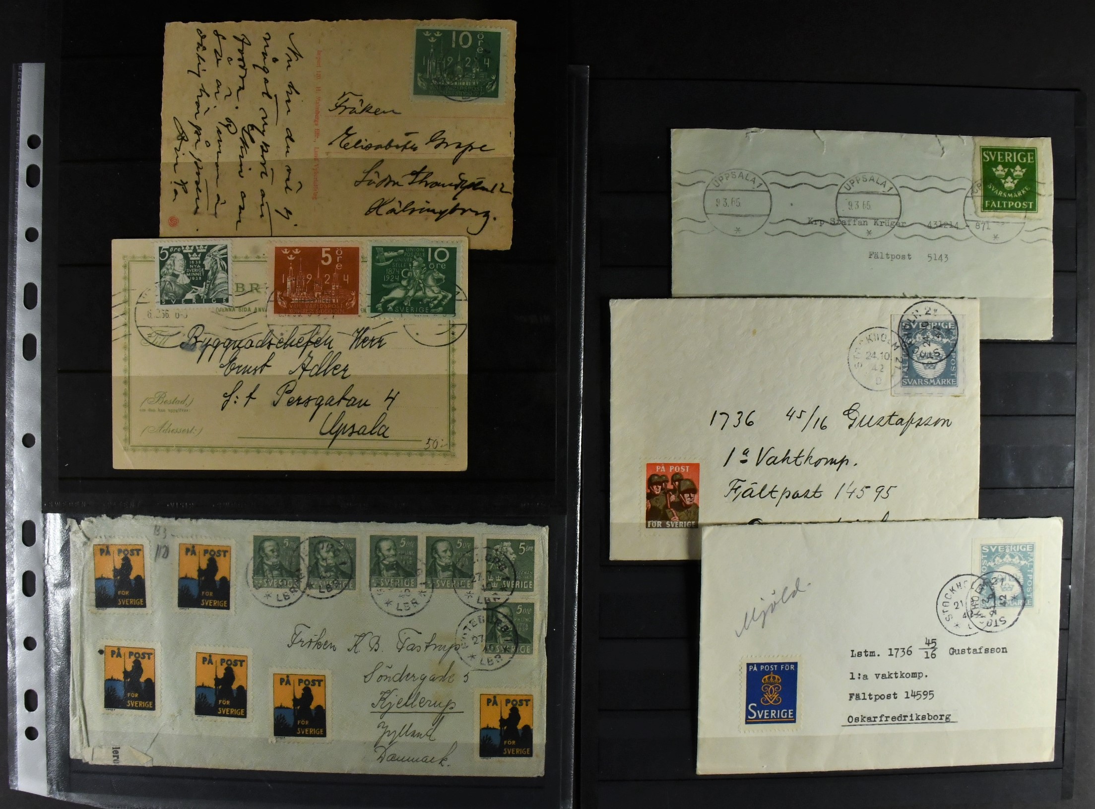 Sweden. Lot covers 1904–1940s. E.g. 1924 Congress and field post. The entire lot is presented at www.philea.se. (24)