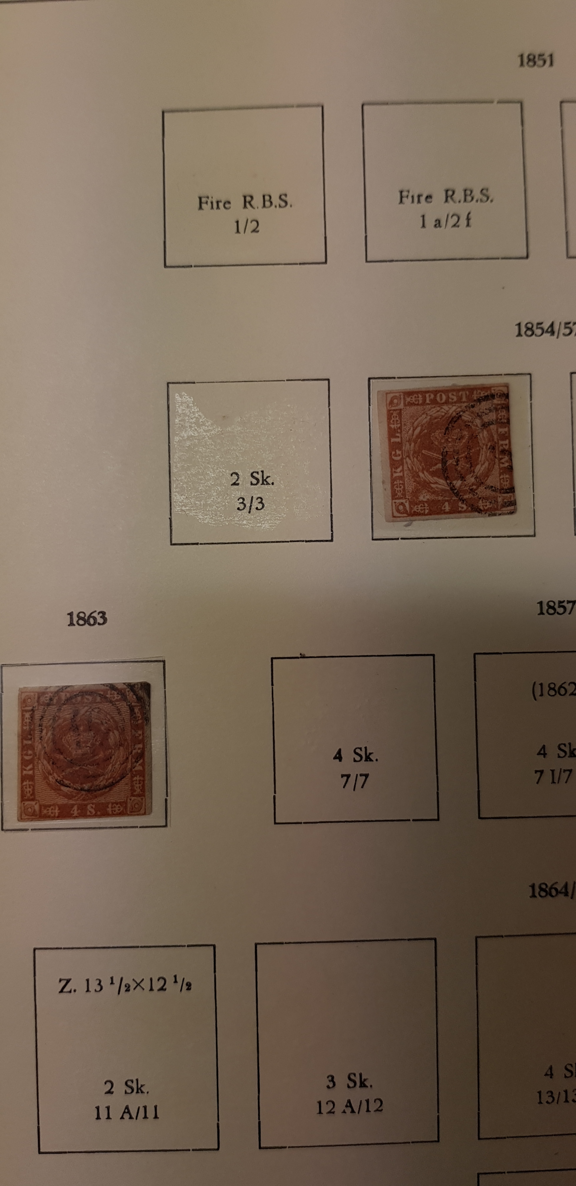 Denmark. Collection mostly used 1854–1971 in album without stamp mounts. A nice assembly of Denmark with two 4-shilling banco stamps of a rather good quality. Please see a selection of scans at www.philea.se. Mostly fine quality. (>500)
