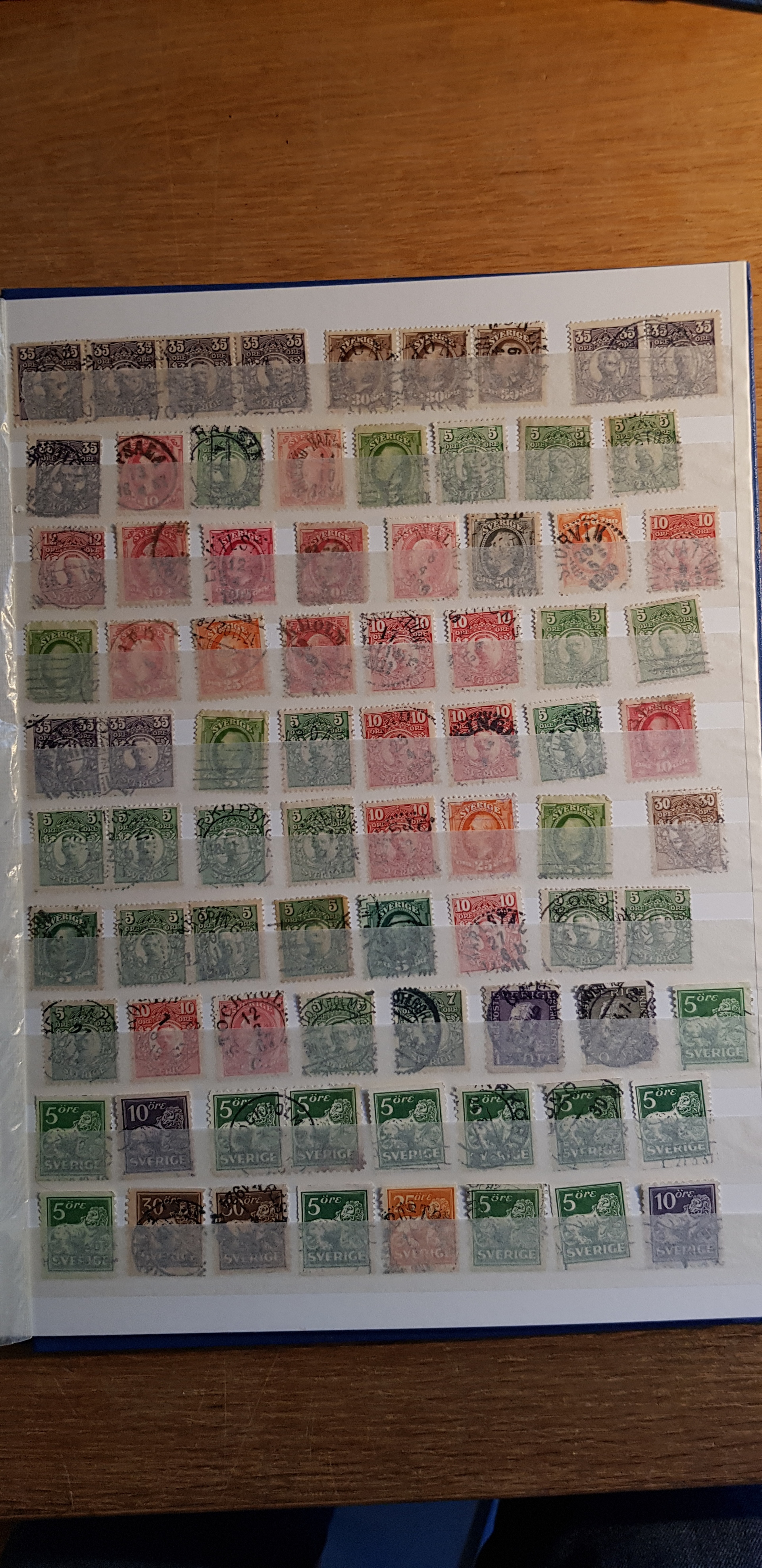 ALL WORLD. Collection/accumulation mostly used 1800–1900 in box. One box including five regular stockbooks, one thicker stockbook and one small. All containing stamps from all over the world. Please see a selection of scans at www.philea.se. Good quality. (>2000)