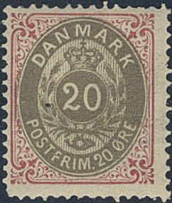 Denmark. Facit 34cc ★★, 1875 Øre values 20 øre grey/light rose. SEK 3500
