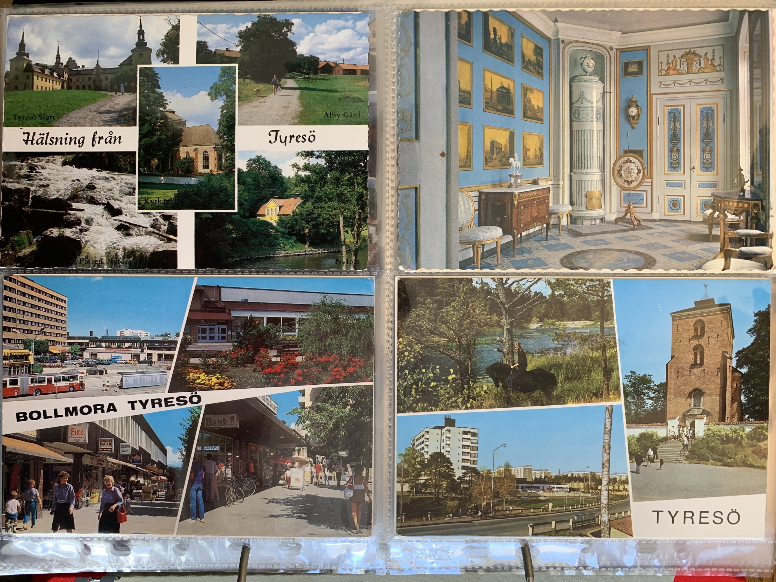 Sweden. Picture postcards. Collection with older and more modern cards from the surroundings of Stockholm, from Alby to Österåker, more than 100 different in a binder with plastic pockets. Please see a selection of scans at www.philea.se.