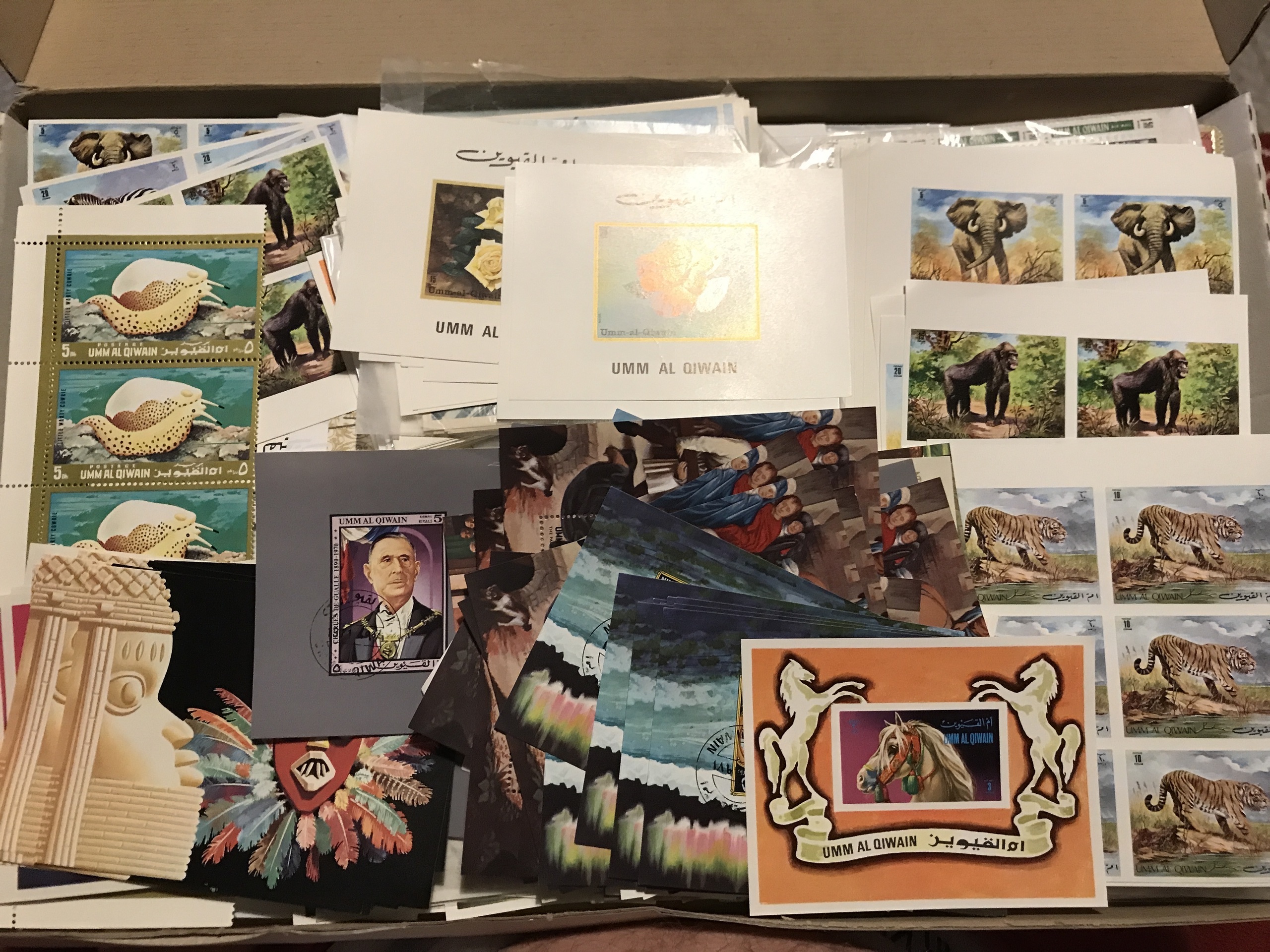 United Arab Emirates, Umm al Quwain. ★★/⊙. Box with e.g. several sets and units, more than 900 souvenir sheets, etc.