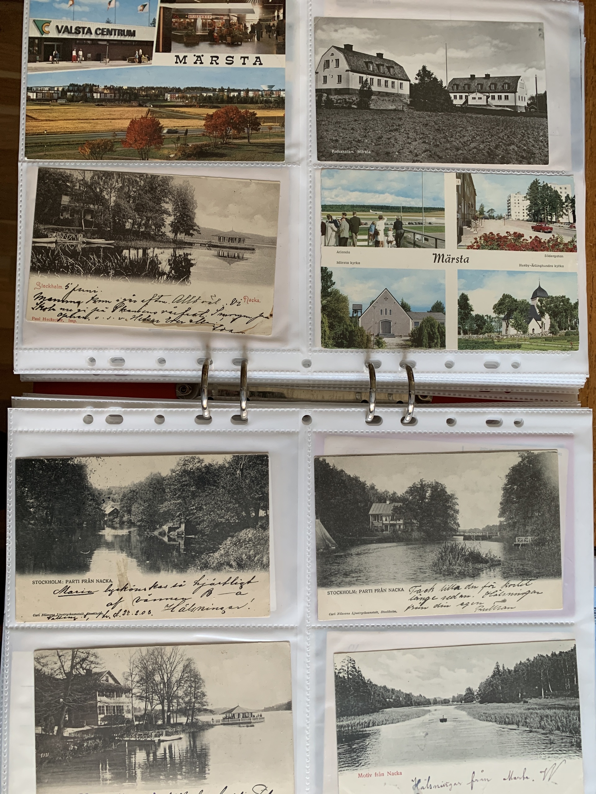 Sweden. Picture postcards. Collection older and more modern cards from the surroundings of Stockholm, from Bagarmossen to Öregrund, 270 different in a binder with plastic pockets. Please see a selection of scans at www.philea.se.