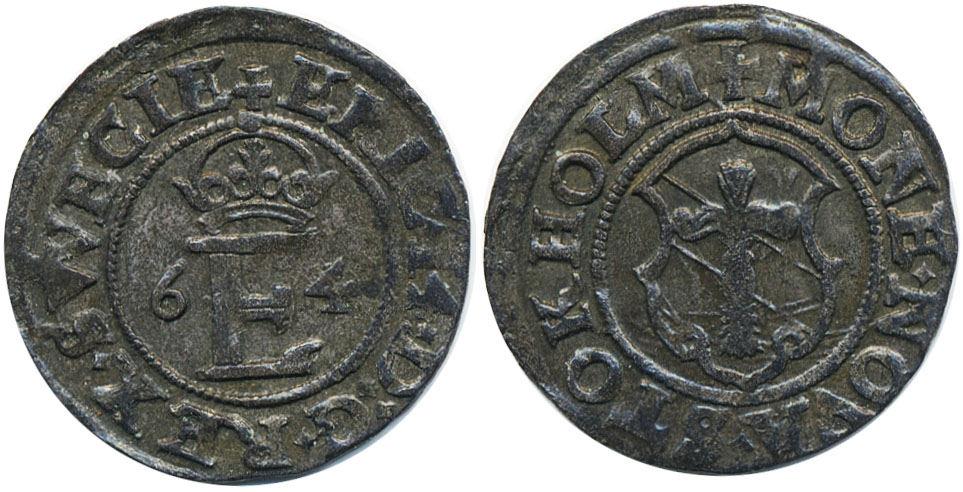 Coins, Sweden. Erik XIV, SM 38, ½ öre 1564. 1.41 g. Stockholm. Well struck example. SMB 52. 1+.