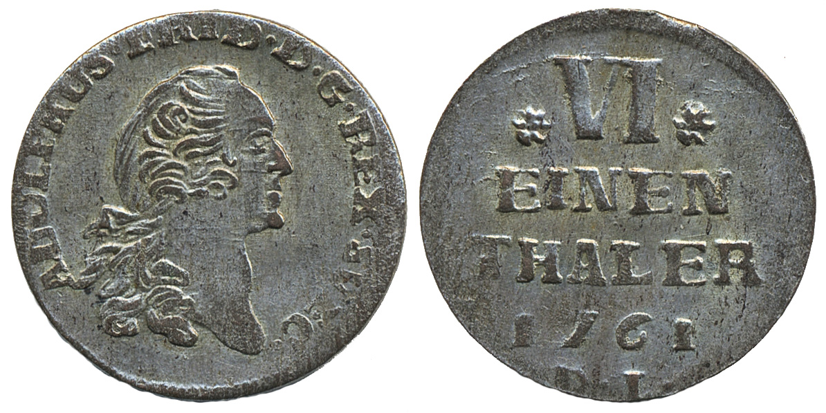 Coins, Swedish possessions, Pomerania. Adolf Fredrik, SB 252 d, 1/6 taler 1761. 4.57 g. Mintmark D.L. 01.