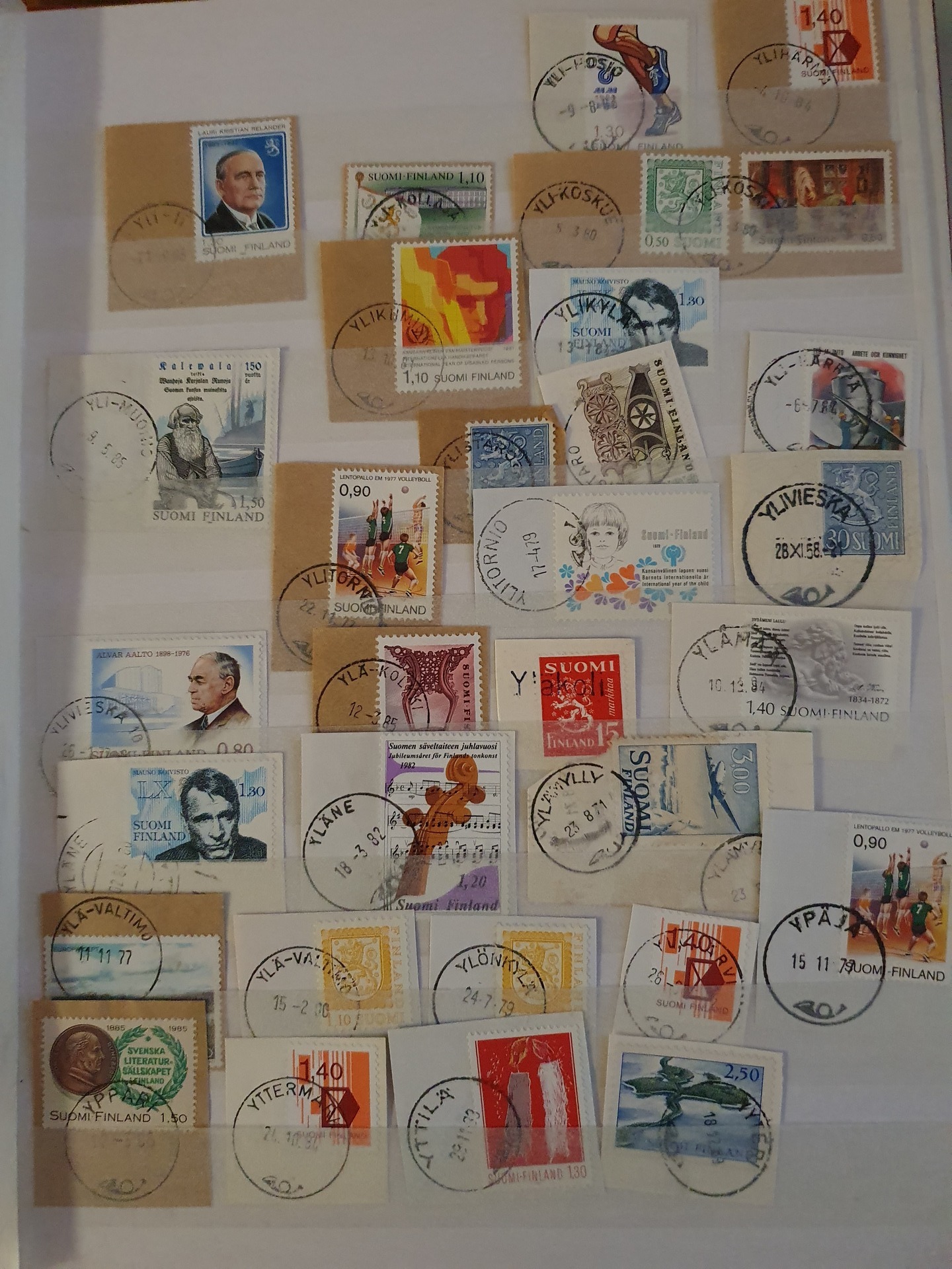 Finland. Collection/accumulation mostly used 1900s in ten stoockbooks in box. E.g. good cancellations, Christmas stamps and duplicates. Please see a selection of scans at www.philea.se. Good quality. Approx. 13 kg.