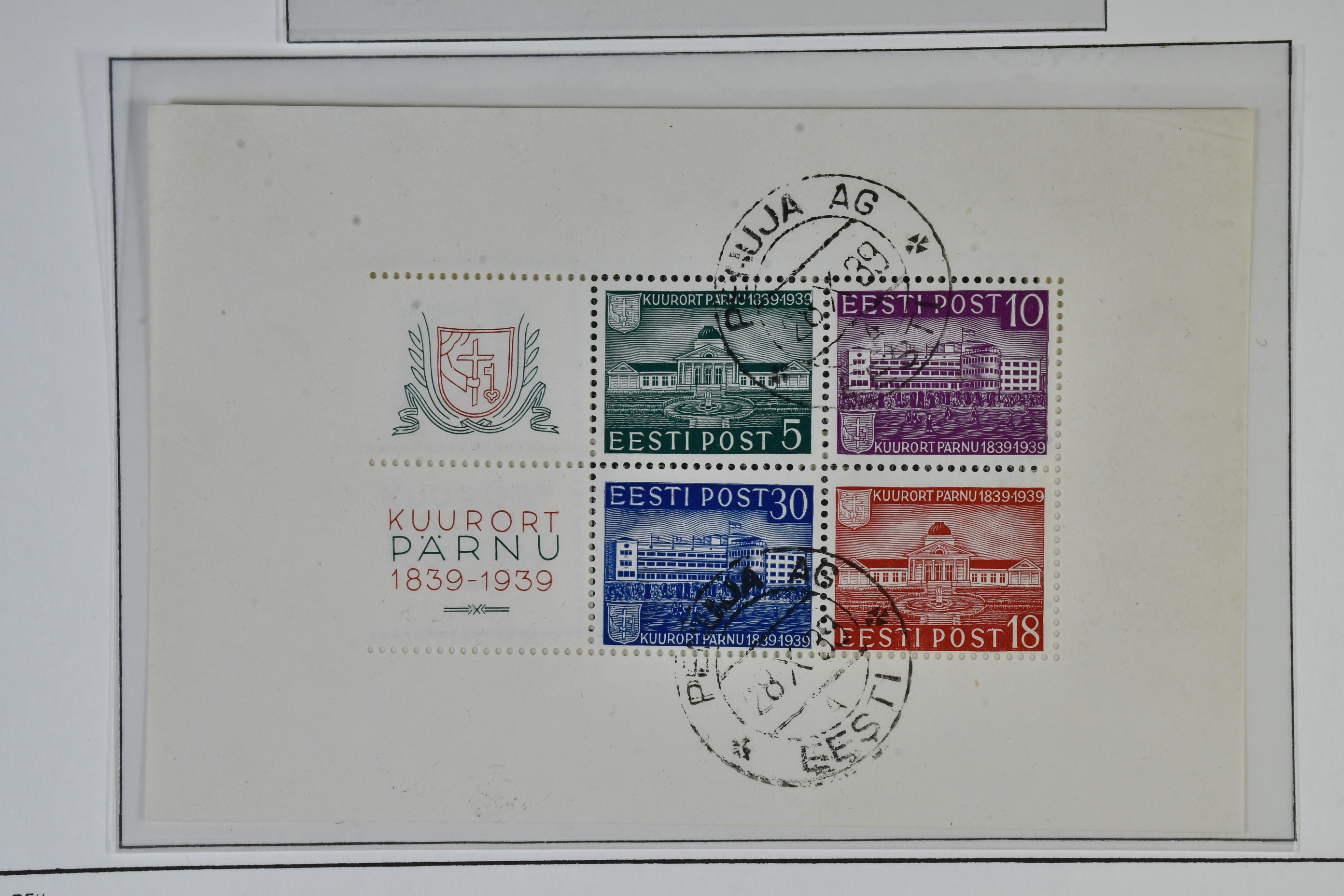 Estonia. Collection mostly used 1918–40 on leaves. Several better, as Mi 45 with certificate Hujala (genuine, but with too late cancel). The entire lot is presented at www.philea.se. Mostly fine quality.